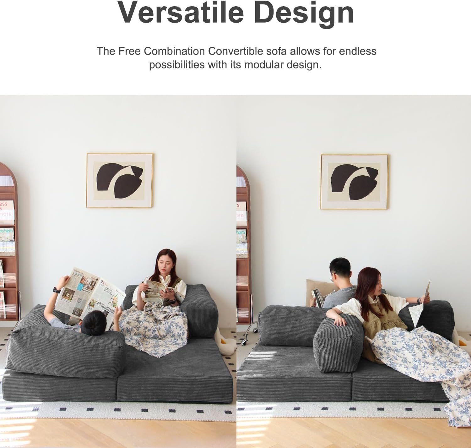 Versatile Design: The Free Combination Convertible sofa allows for endless possibilities with its modular design. Transform it into a 2-person loveseat, two separate chairs, or even a small bed for a quick nap. Customize your seating arrangement to suit your preferences and needs, providing a unique and adaptable seating experience.