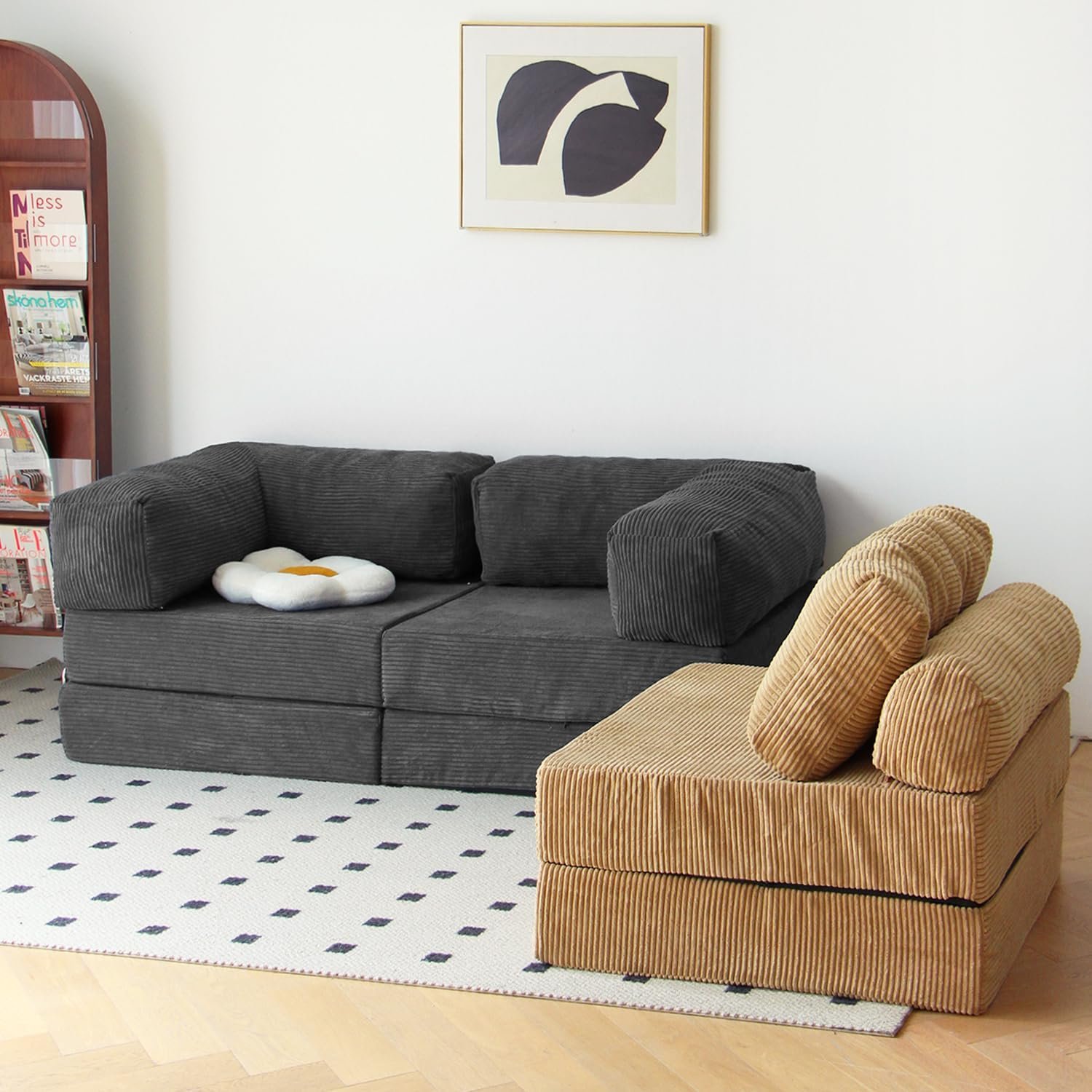Upgraded Pillow Design: Experience enhanced comfort with the upgraded zipper feature on the pillows, preventing slippage and ensuring both aesthetics and strong support. Whether seated or reclined, relax in utmost comfort with the Free Combination Convertible sofa’s ergonomic design.