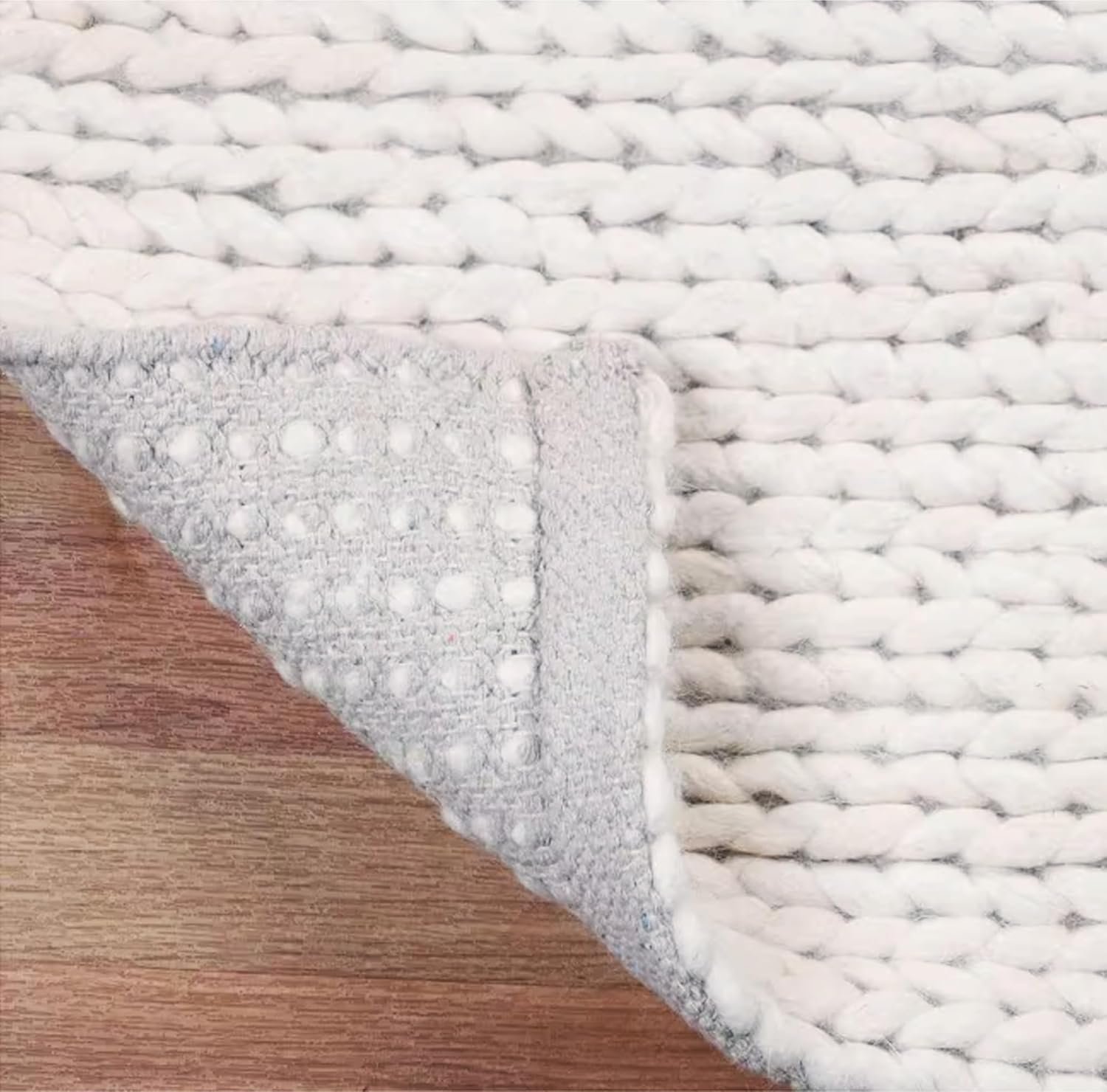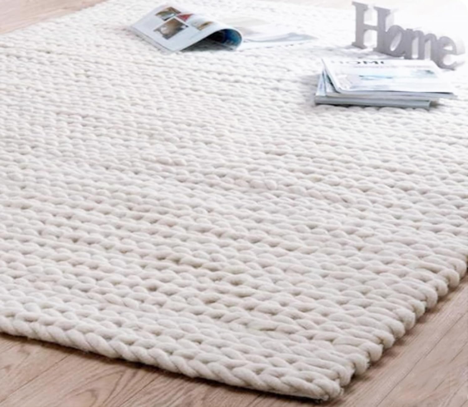 FRELISH DECOR Wool Cotton Area Rug for Living Room and Bedroom, 8’x10′ Handwoven Braided Chunky Knit Cable Rugs, Farmhouse Contemporary Area Rug: Ivory