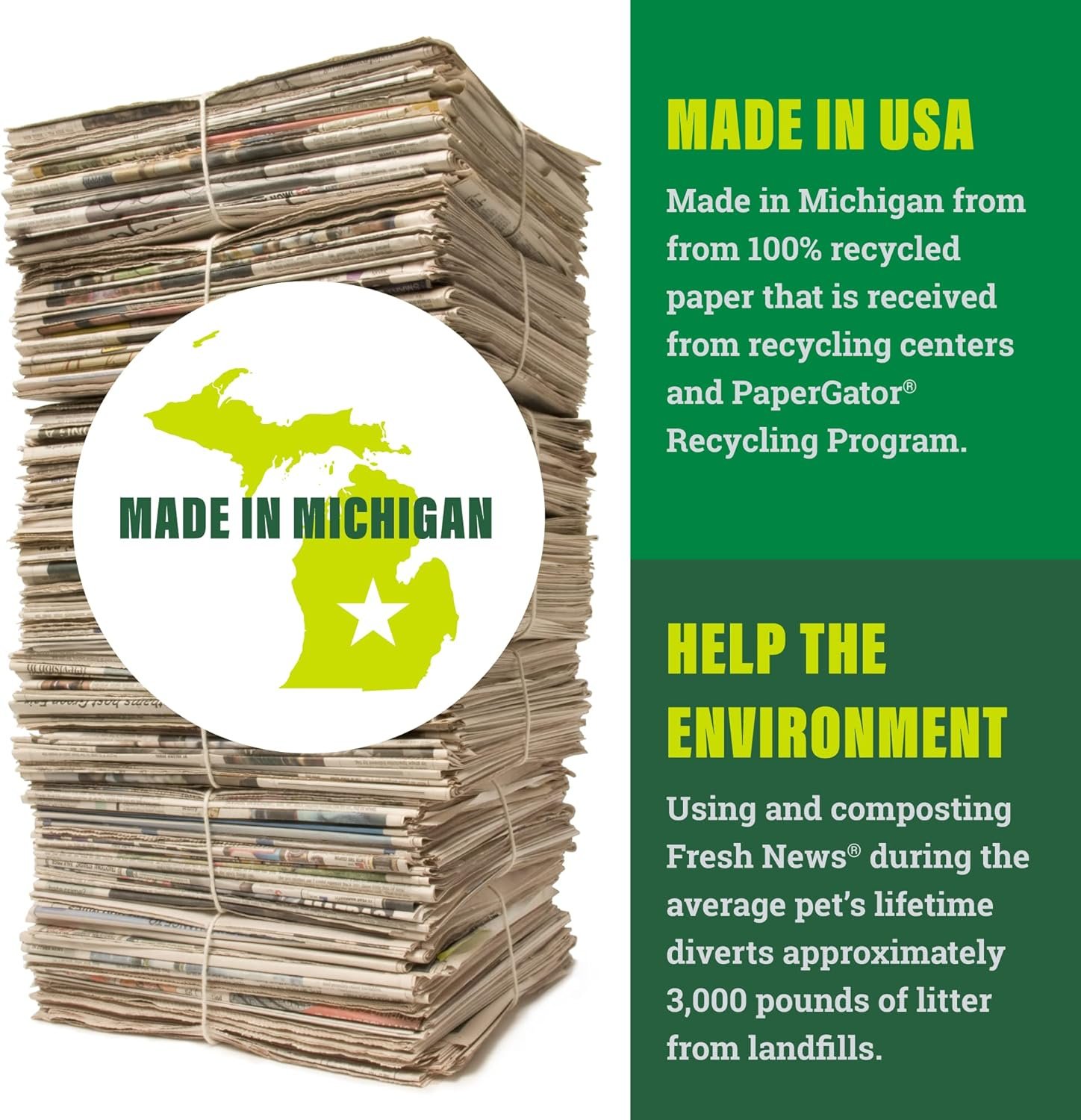 Cat Litter: No more lingering pet smell; Fresh News Recycled Paper Litter is non clumping, has almost three times more absorbent strength than clay, and our soft & dust free pellets retain their form when wet