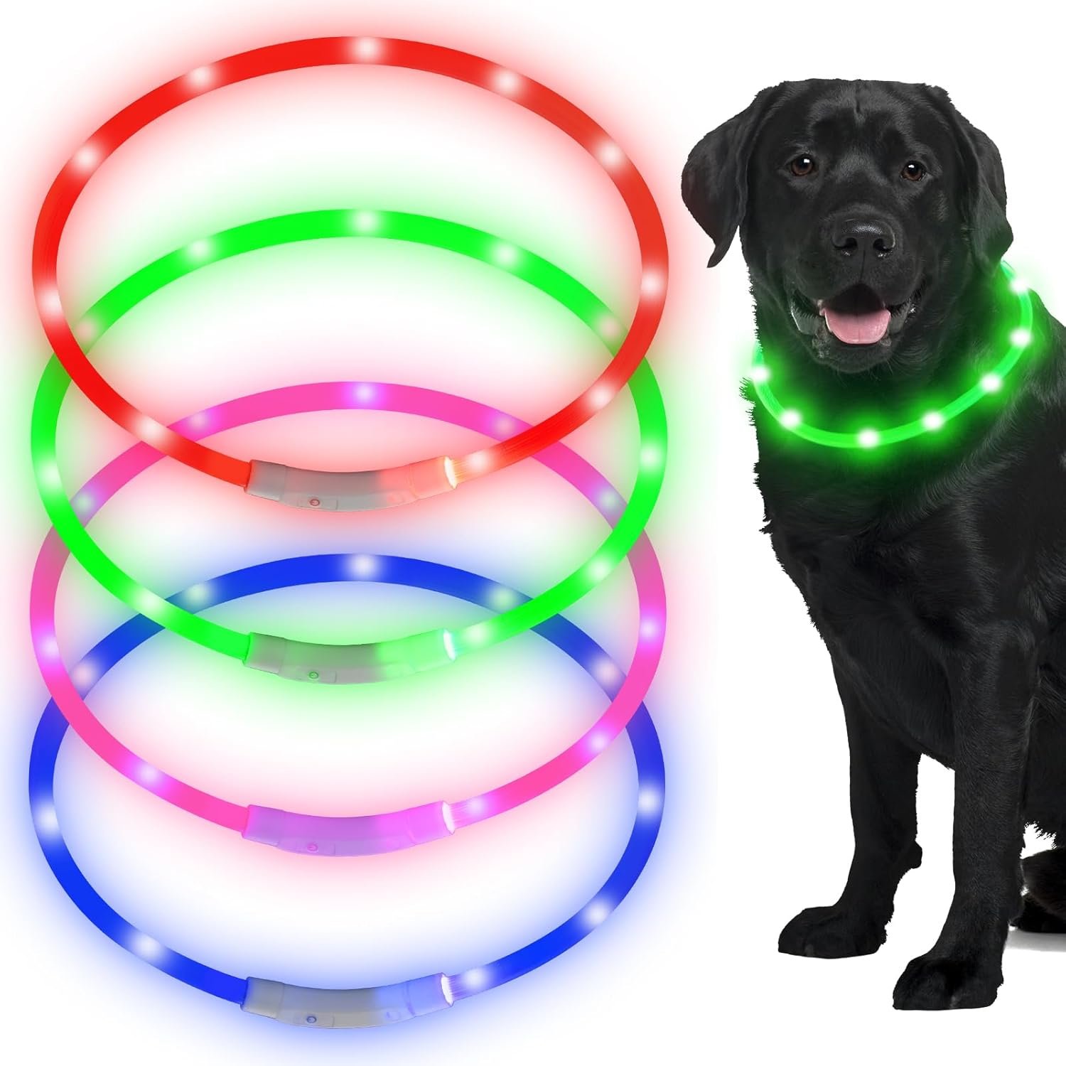 Adjustable size: the total length of light up dog collar is approx. 27.5 inches, and you could easily tailor the length to the size of the dog’s neck like spaniel, labrador, hound, German shepherd, collie and more