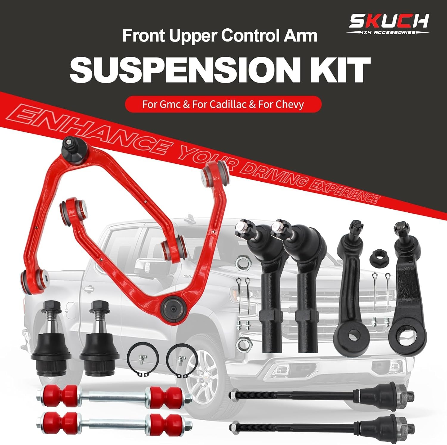 Front End 12pc Suspension Kit with PU Bushing for 1999-2006 Chevy Silverado GMC Sierra 1500, Suburban 1500 Tahoe Yukon/Yukon XL 1500, Avalanche 1500 Escalade/Ext