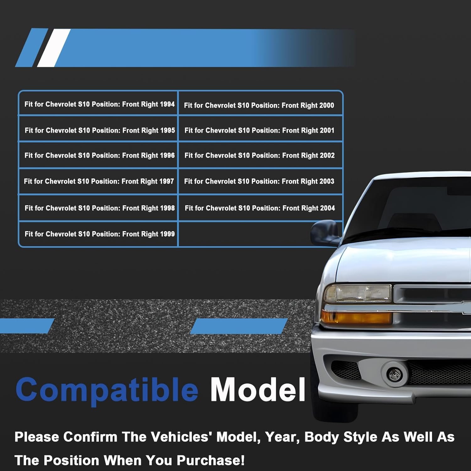 Compatibility: Compatible with Chevrolet S10 Pickup, 1994 1995 1996 1997 1998 1999 2000 2001 2002 2003 2004. Check compatibility before purchase for the best fit