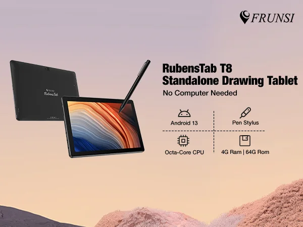 Frunsi T8 Standalone Drawing Tablet Pad 8 Inch with IPS HD Screen HD Display No Computer Needed, Android 13 Pen Stylus 4GB/64GB