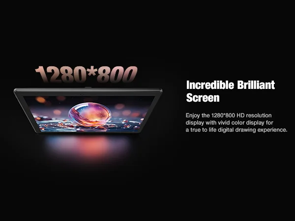 2. FHD Display, HD Resolution display with IPS HD screen, offers clear display for digital drawing. The colorful display shows the vibriant true color and tone,resolution is 1280*800P,the palm rejection allows you to drawing on scree without any distraction.