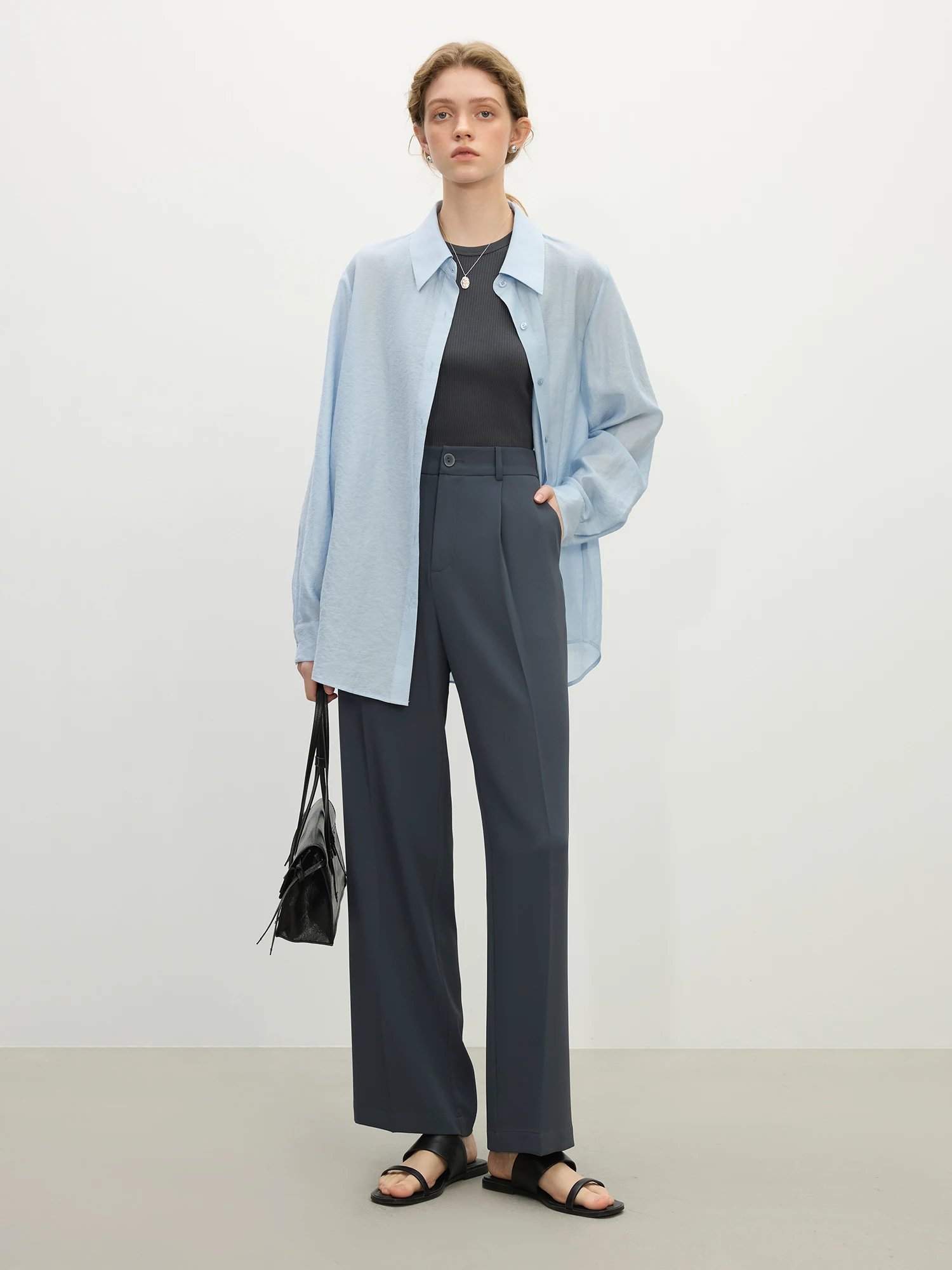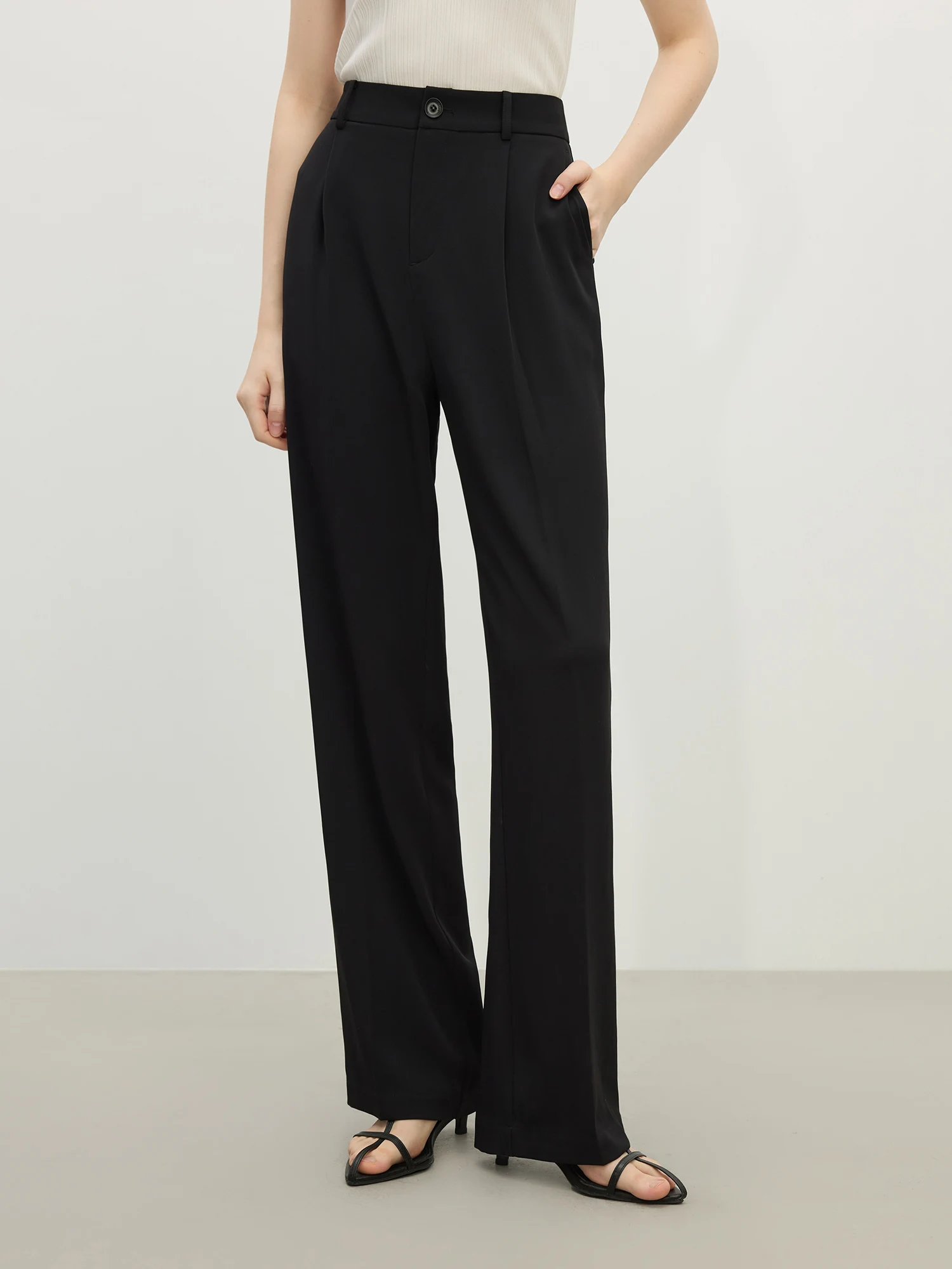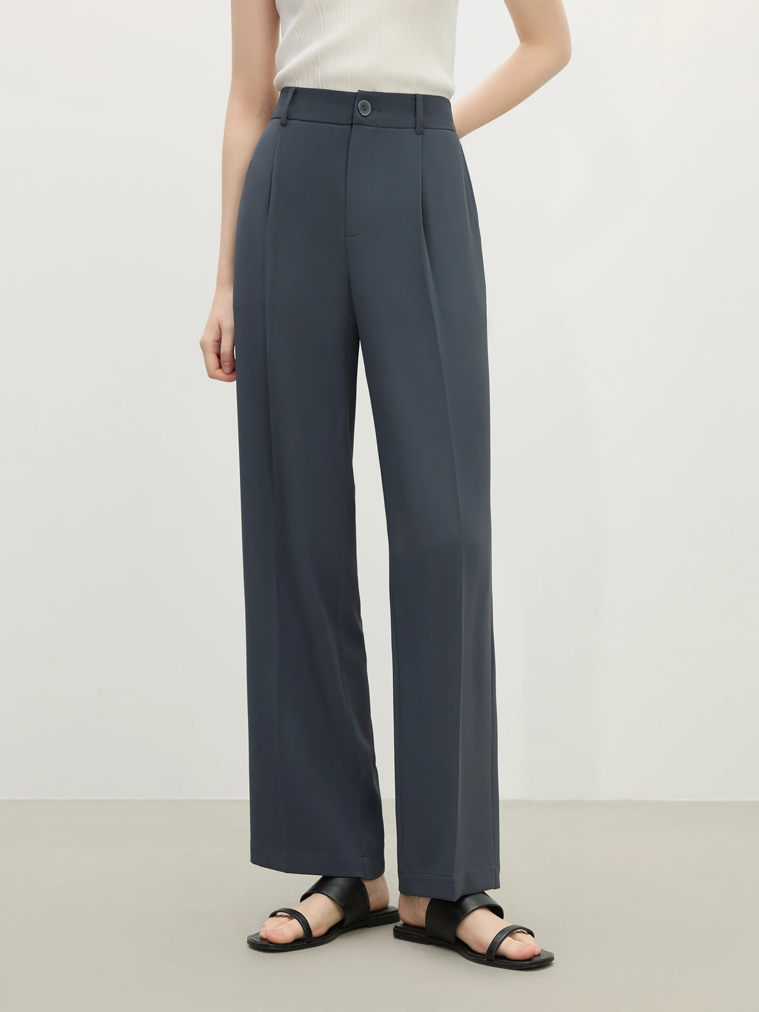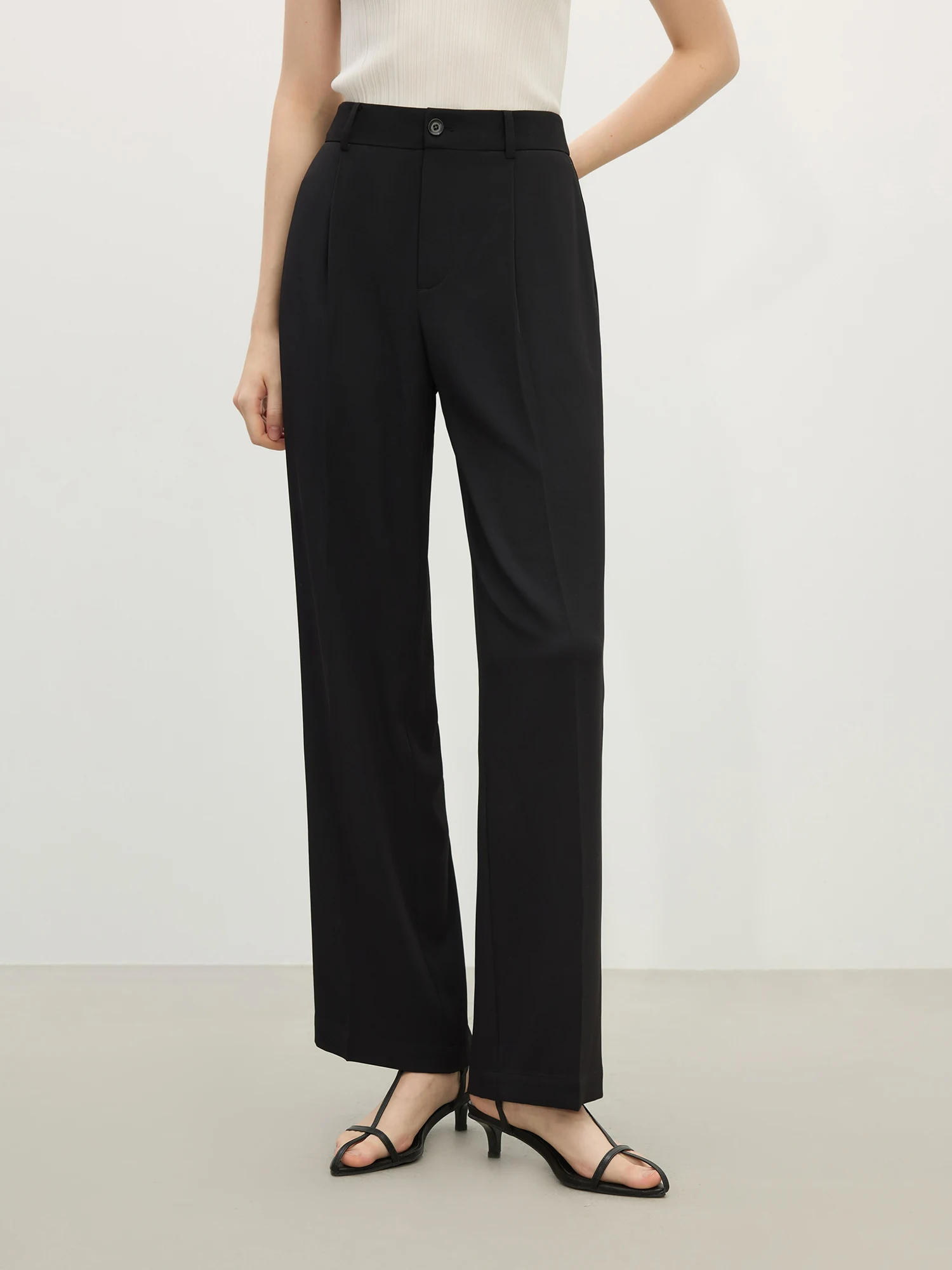 7 reviews for FSLE【2 Length】Women Black Commuter Long Trousers High Waist Grey Draped Straight Female Cropped Pants 25FS11163+25FS11248
