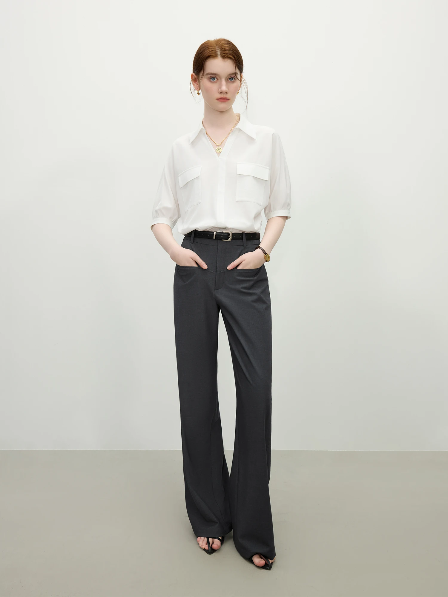 2 reviews for FSLE 2025 Summer Wool Acetate Wide-Leg Pants – Fluid Drape Office Trousers with Hidden Elastic Waist & 4-Way Stretch