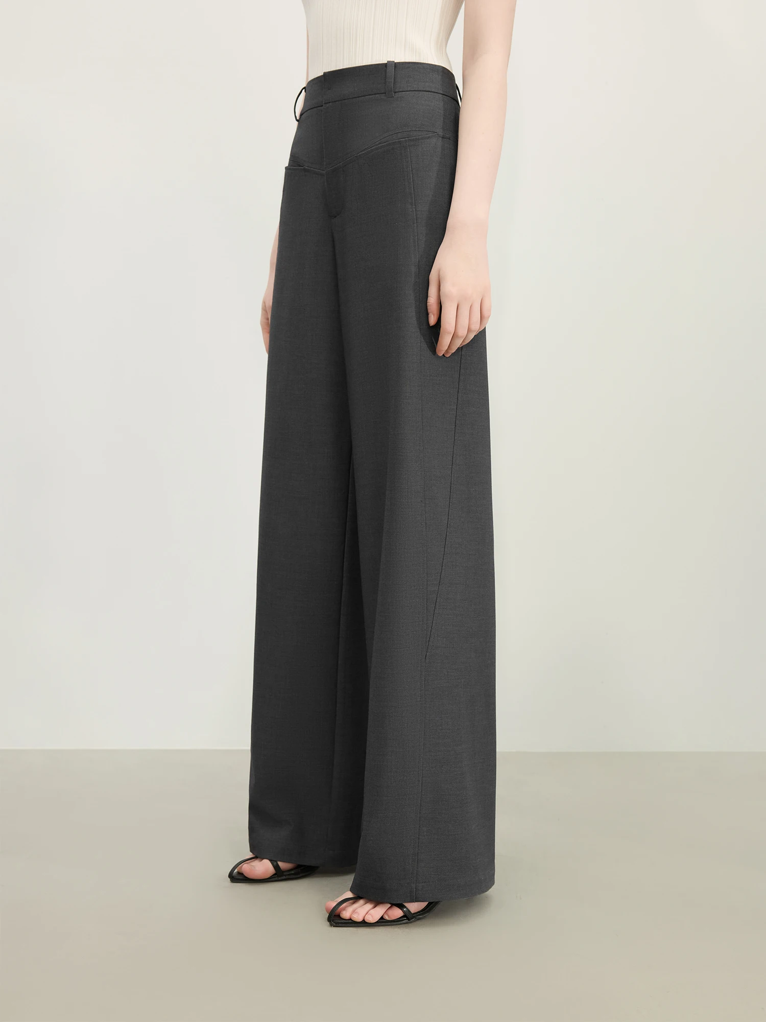 FSLE 2025 Summer Wool Acetate Wide-Leg Pants – Fluid Drape Office Trousers with Hidden Elastic Waist & 4-Way Stretch