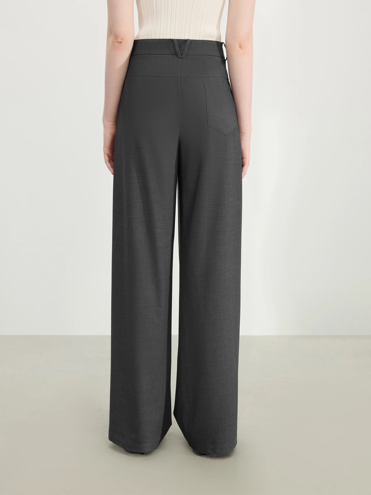 FSLE 2025 Summer Wool Acetate Wide-Leg Pants – Fluid Drape Office Trousers with Hidden Elastic Waist & 4-Way Stretch