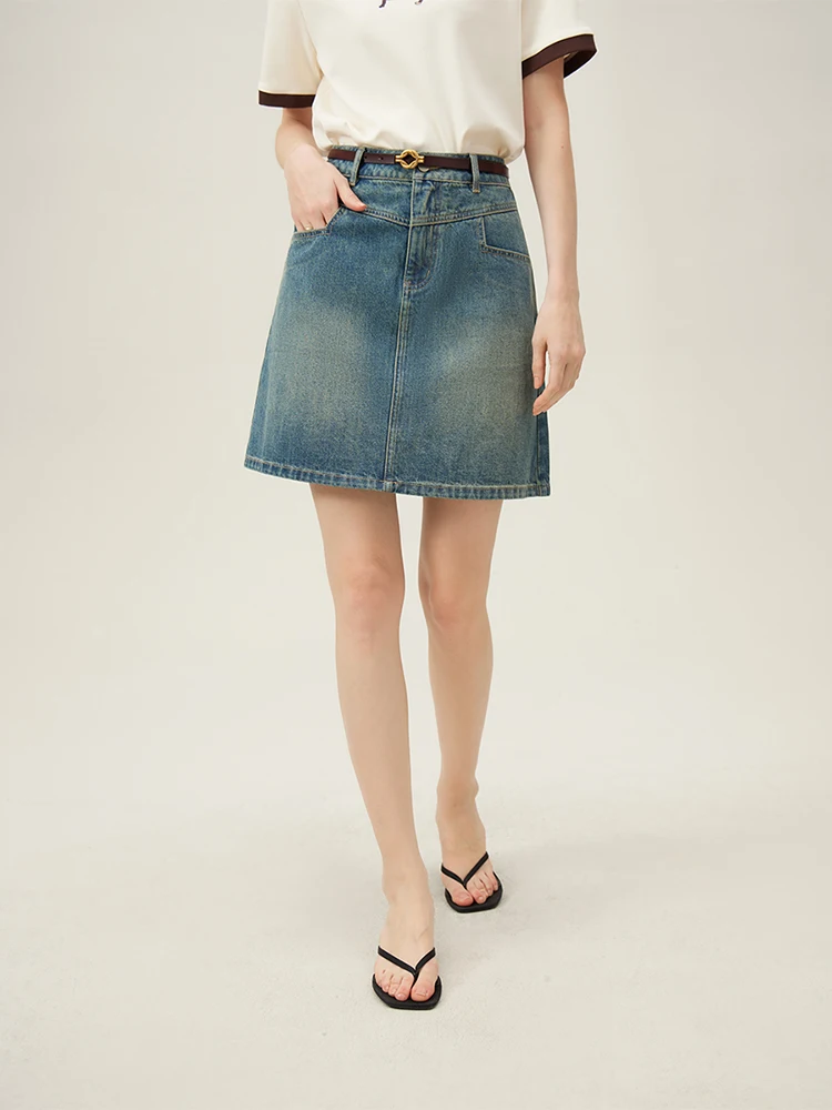 FSLE Academy Style Denim Skirt For Women’s 2024 New Summer A-line High Waisted Short Blue Women Shorts Casual Skirt 24FS12171