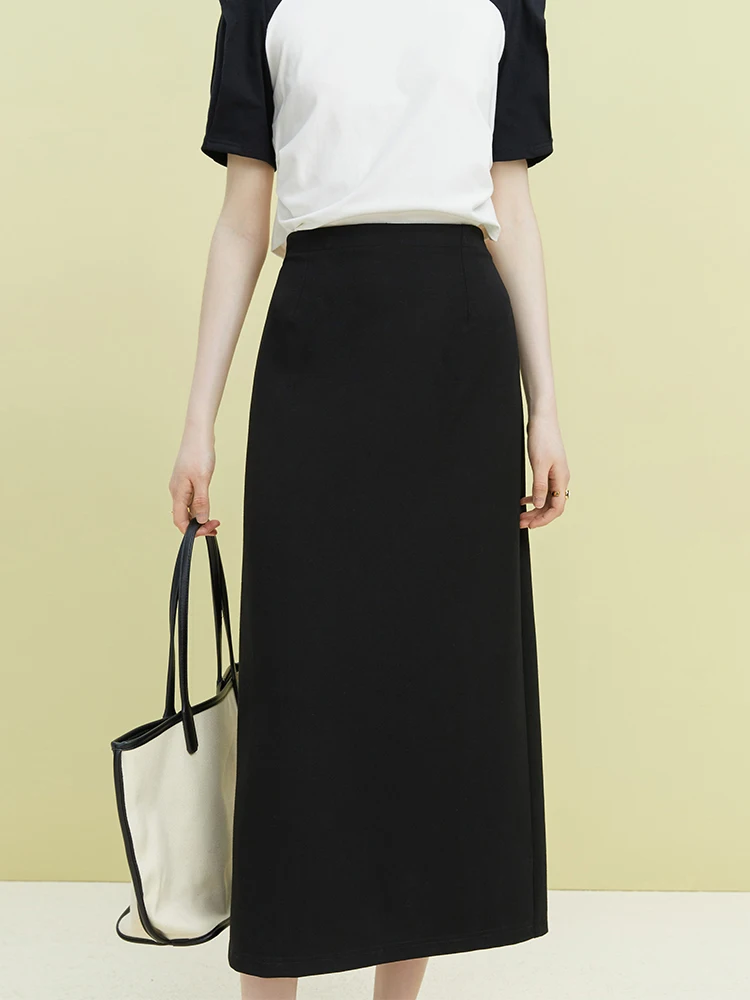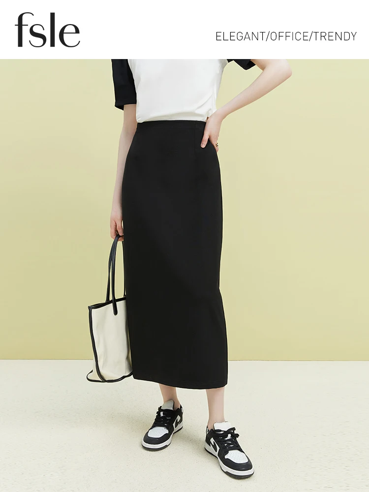 FSLE Black Long Temperament Women Skirts 2023 Summer Simple Straight Women Skirt High Waist Solid Commuter Office Lady Skirt