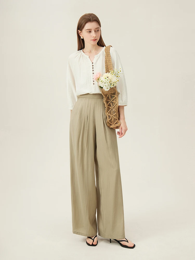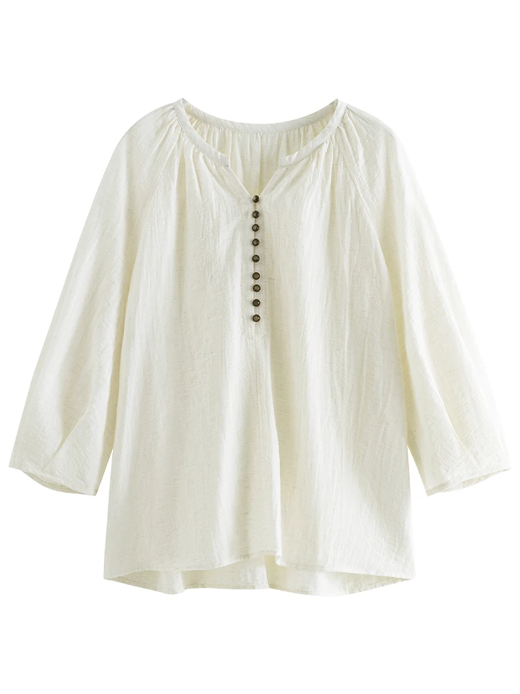 4 reviews for FSLE French Linen Beige Three-quarter Sleeve Elegant Summer Thin Shirts Loose Round Neck Pullover Blouses 24FS12211