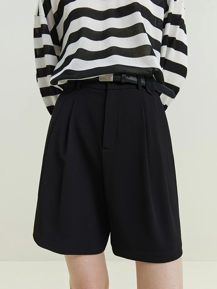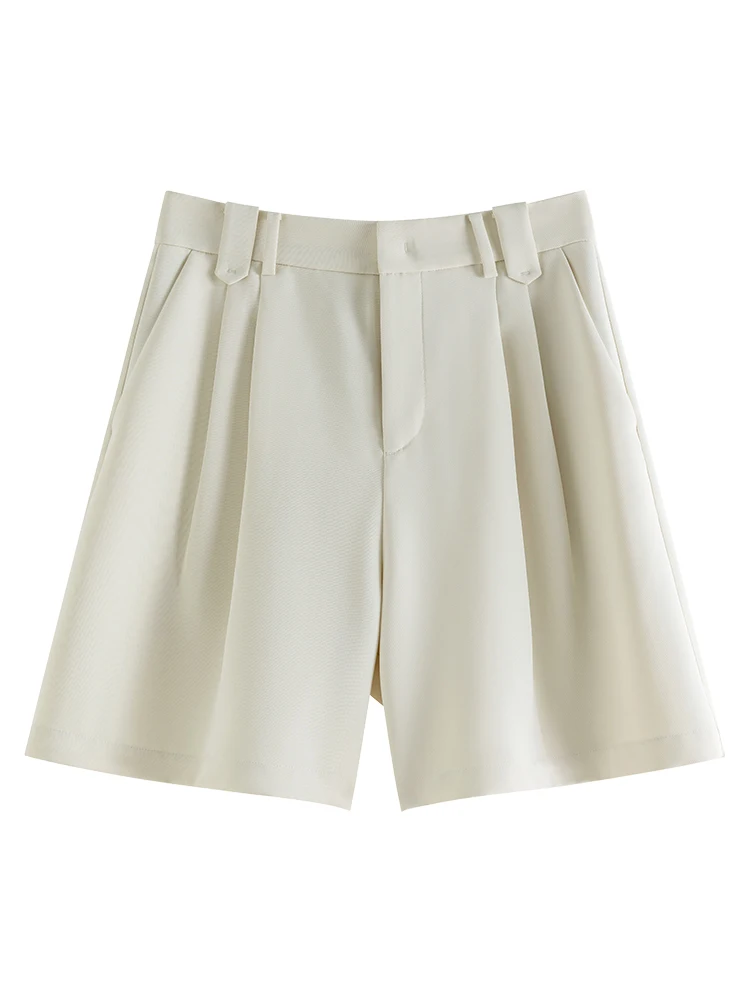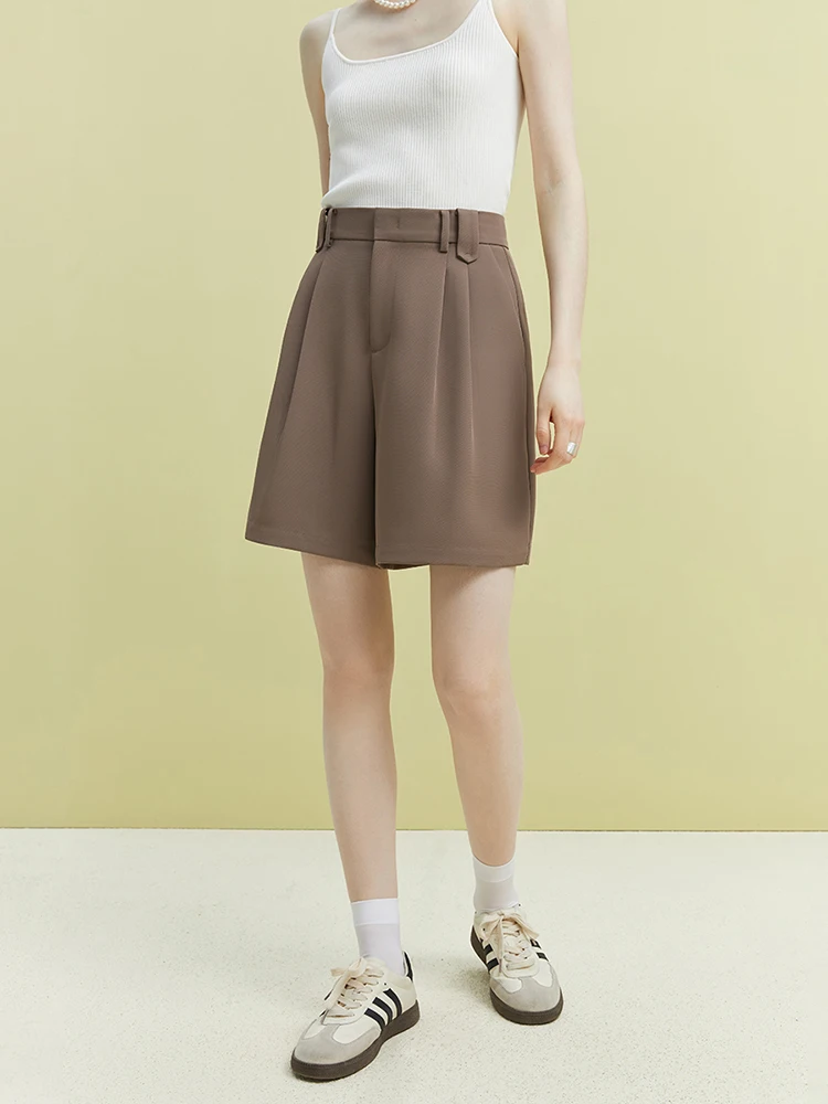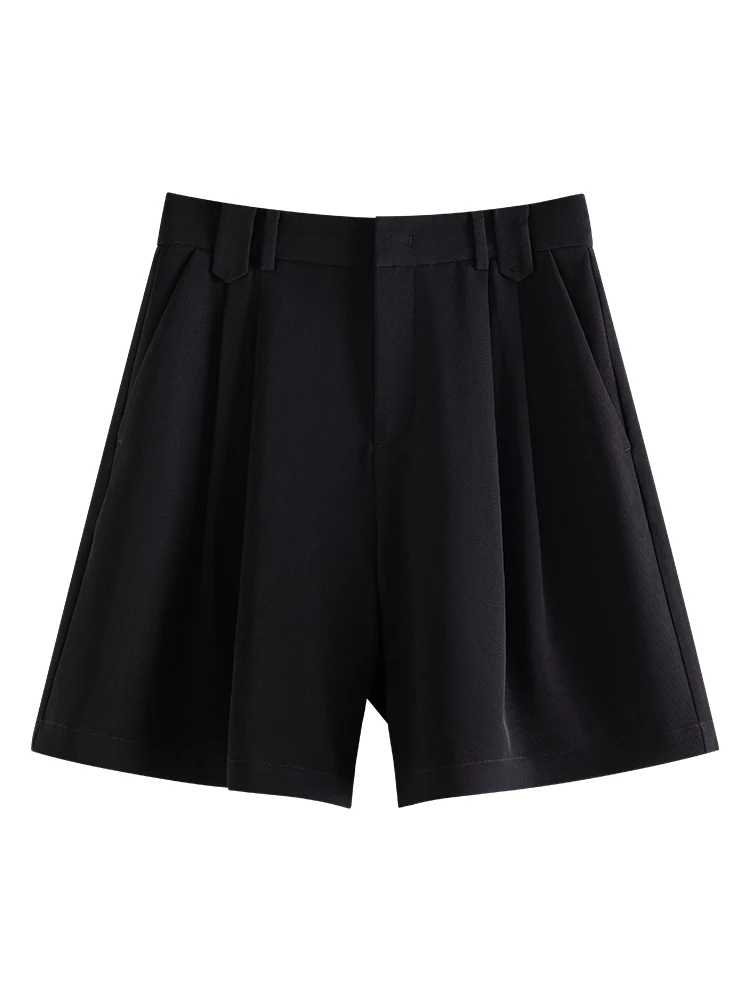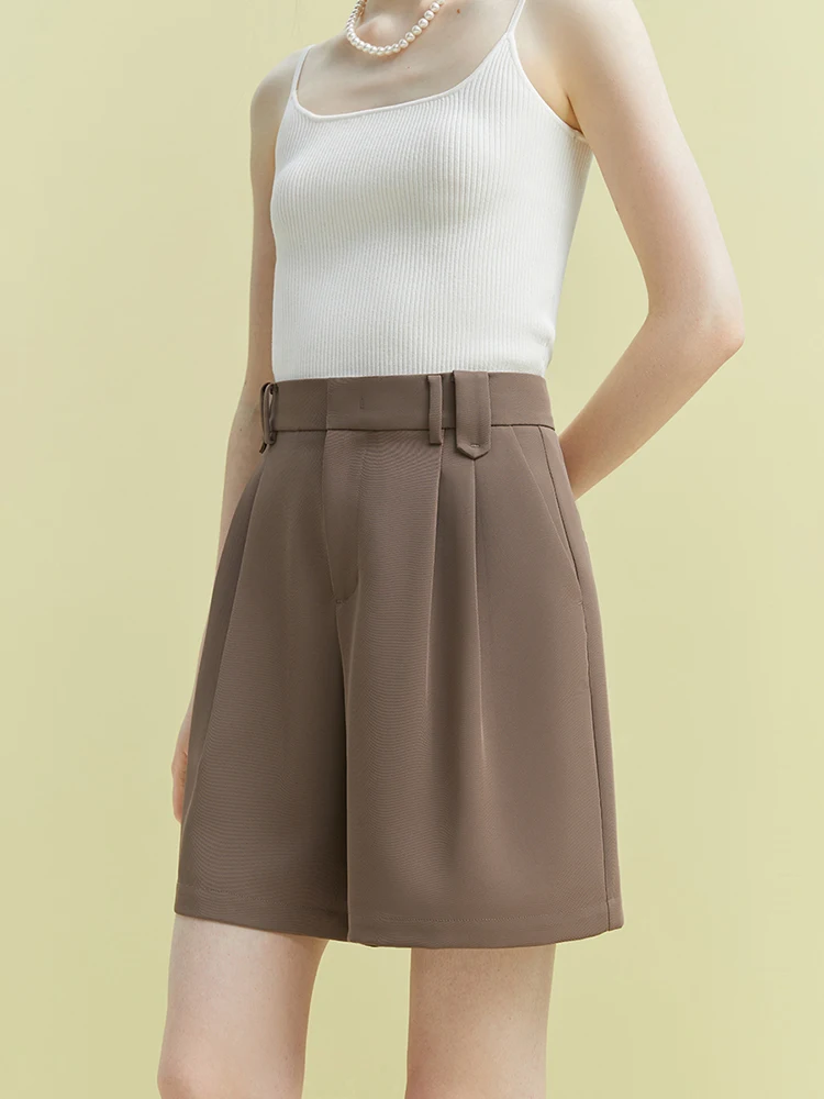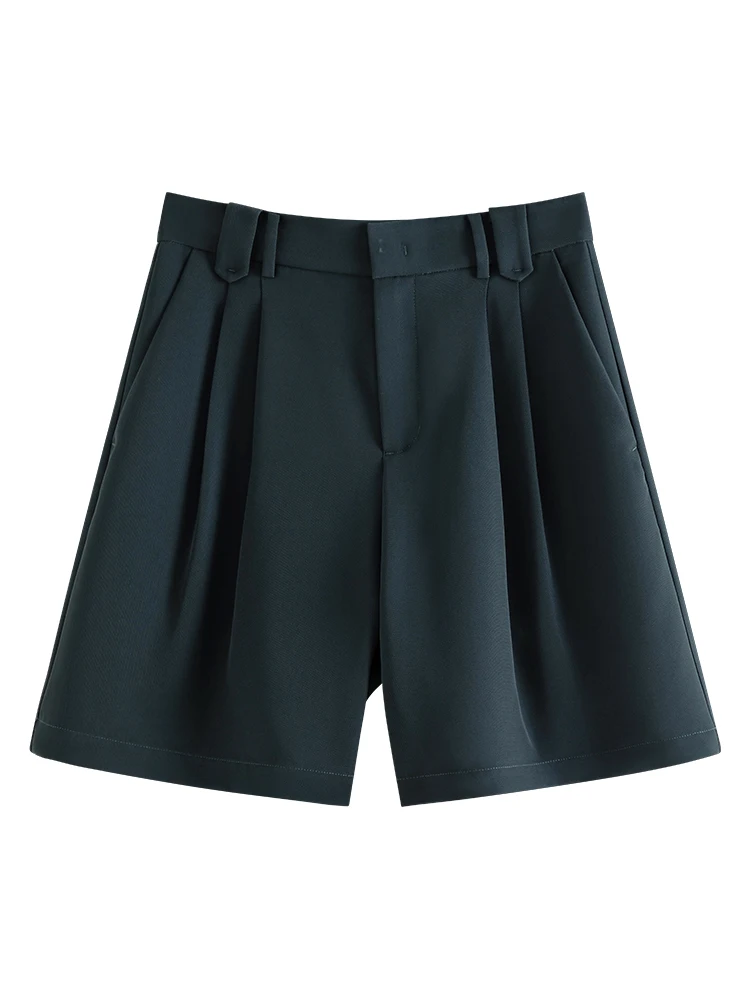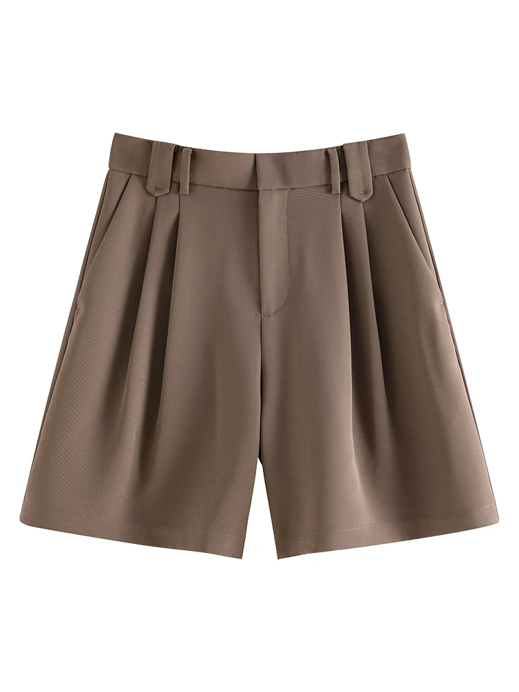 FSLE High Waist Women Suit Shorts Office Lady 2023 Summer Pleated Design Women Twill Shorts A-LINE Loose Commuter Female Pants