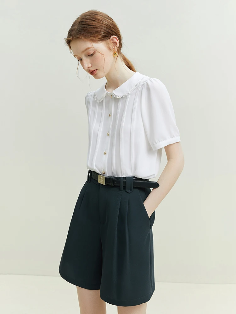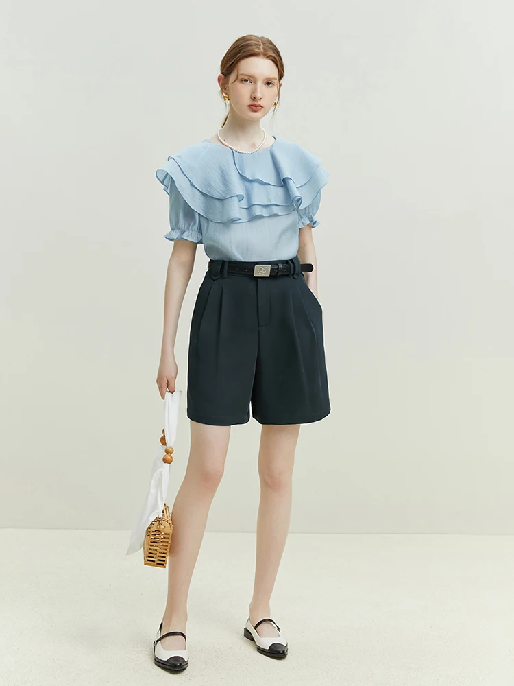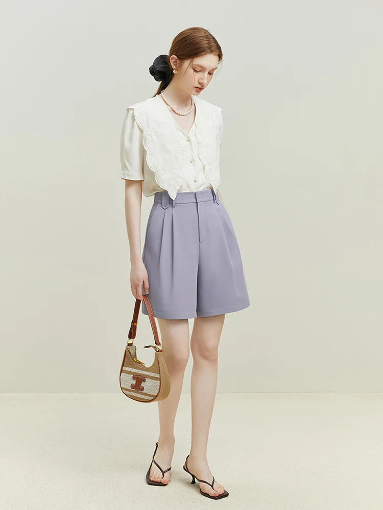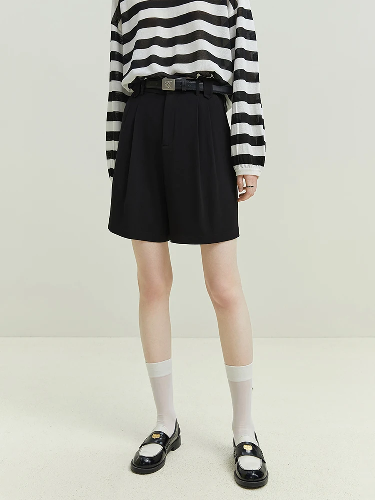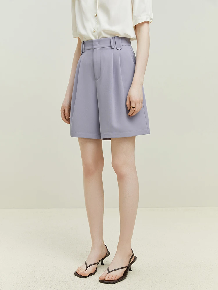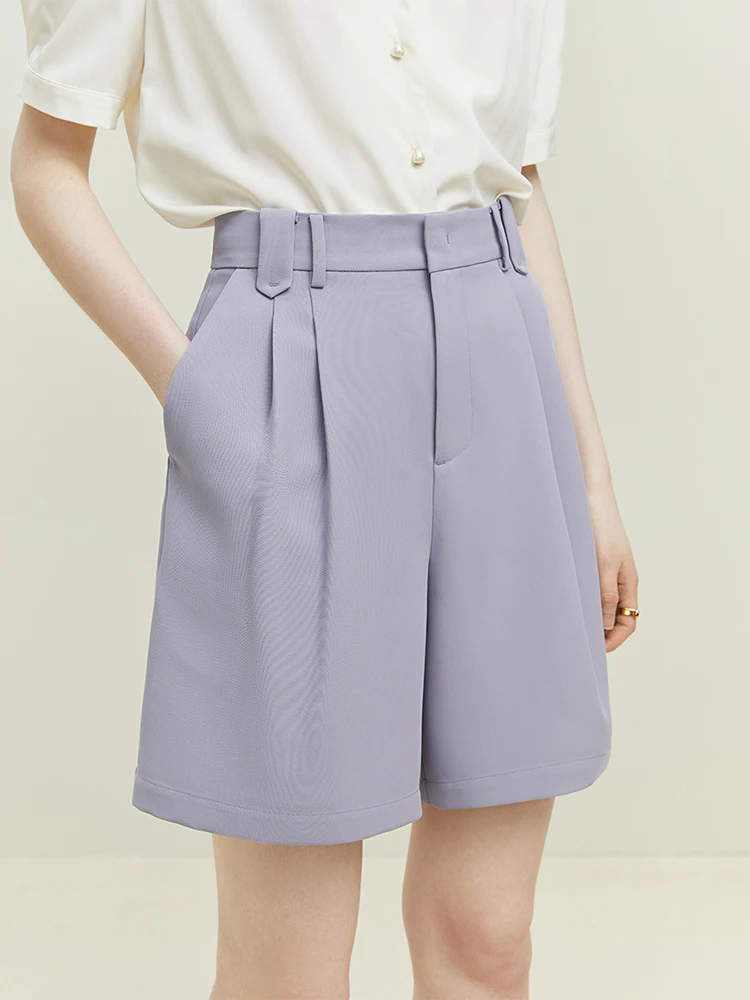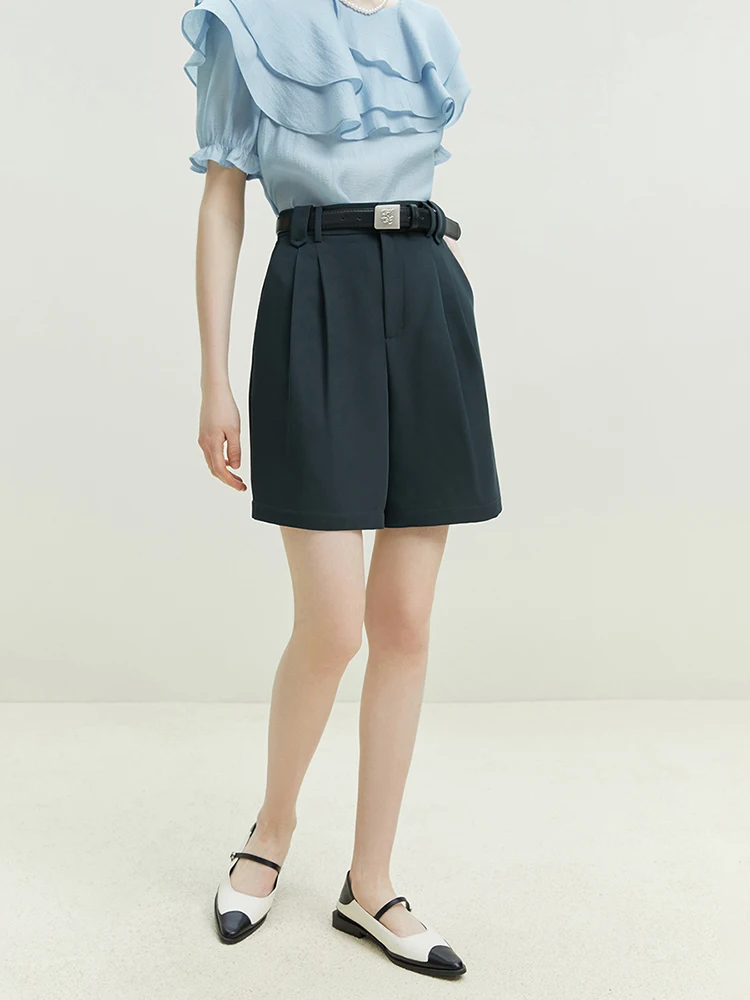 FSLE High Waist Women Suit Shorts Office Lady 2023 Summer Pleated Design Women Twill Shorts A-LINE Loose Commuter Female Pants