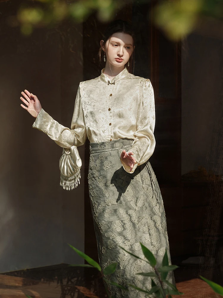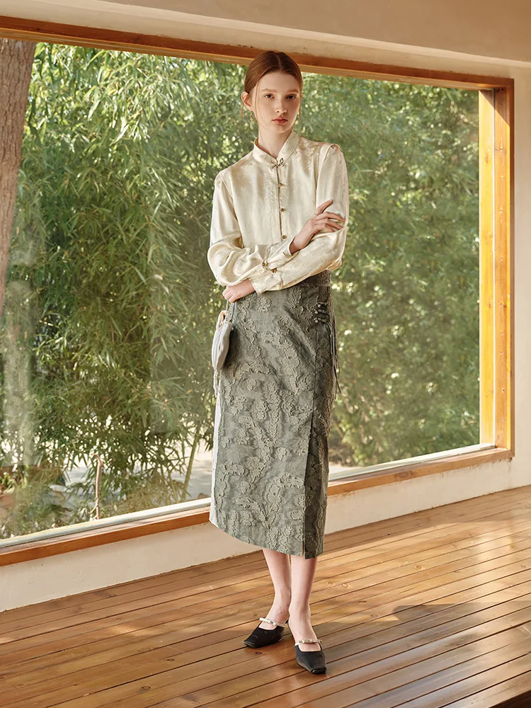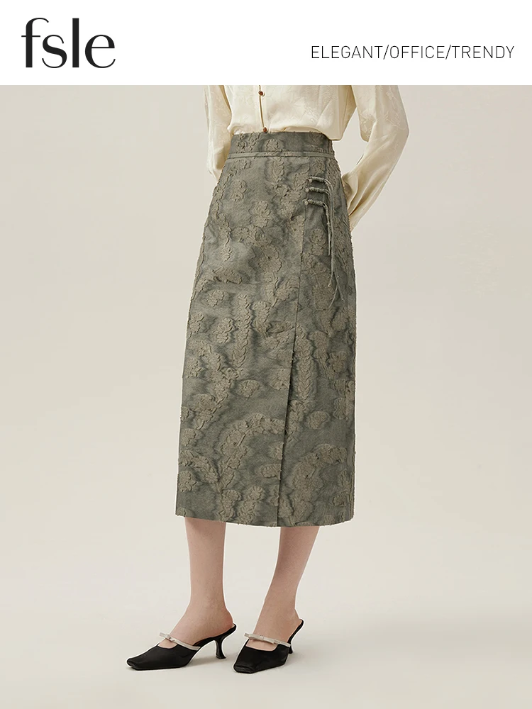 1 review for FSLE New Chinese Style Light National Style A-line Skirt for Women Spring 2024 Design Sense Elegant Skirt Female 24FS11046
