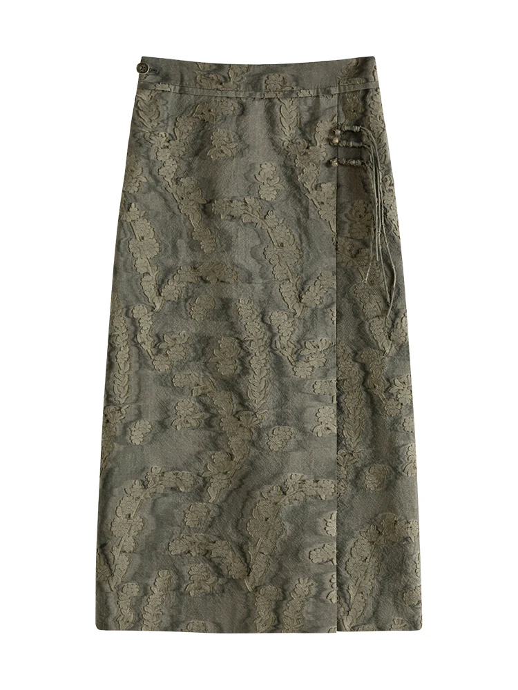 FSLE New Chinese Style Light National Style A-line Skirt for Women Spring 2024 Design Sense Elegant Skirt Female 24FS11046