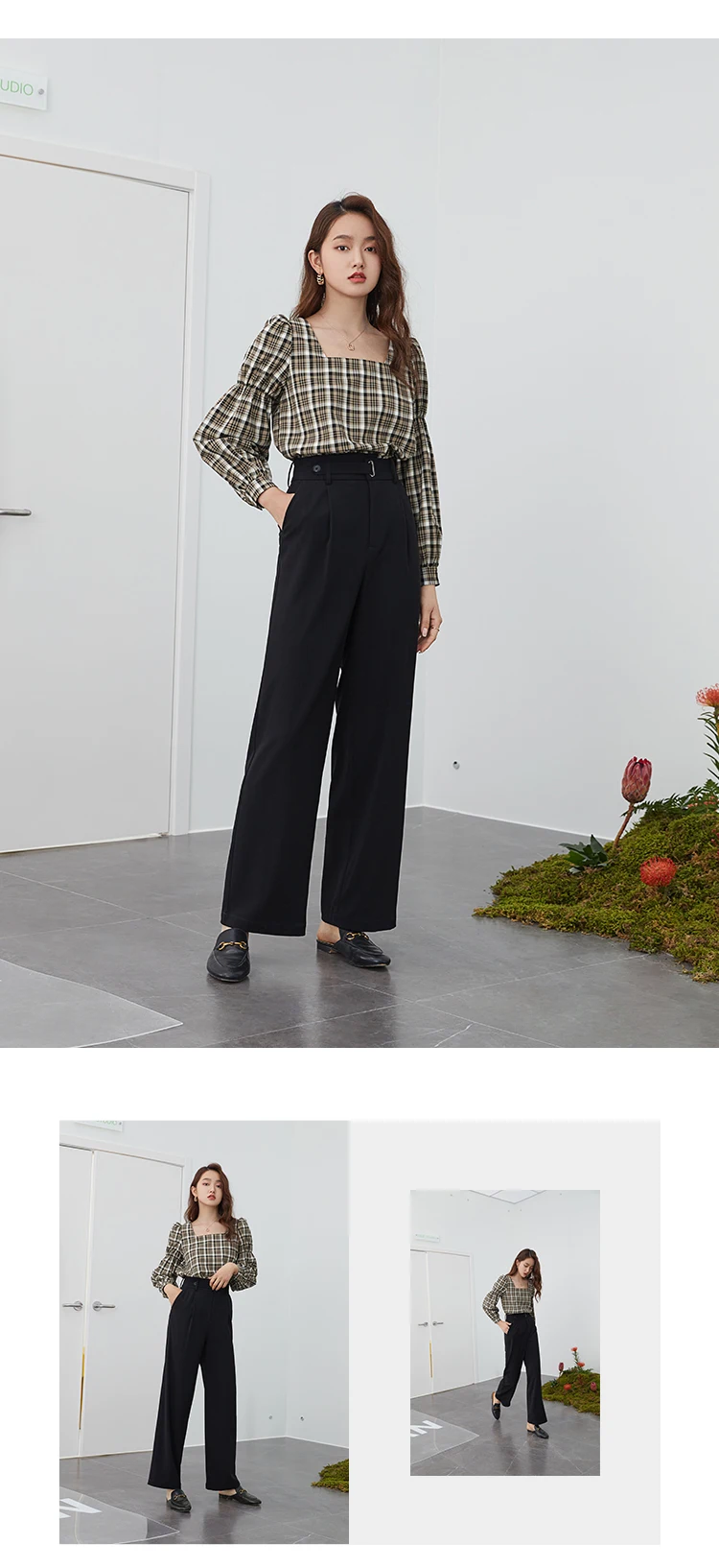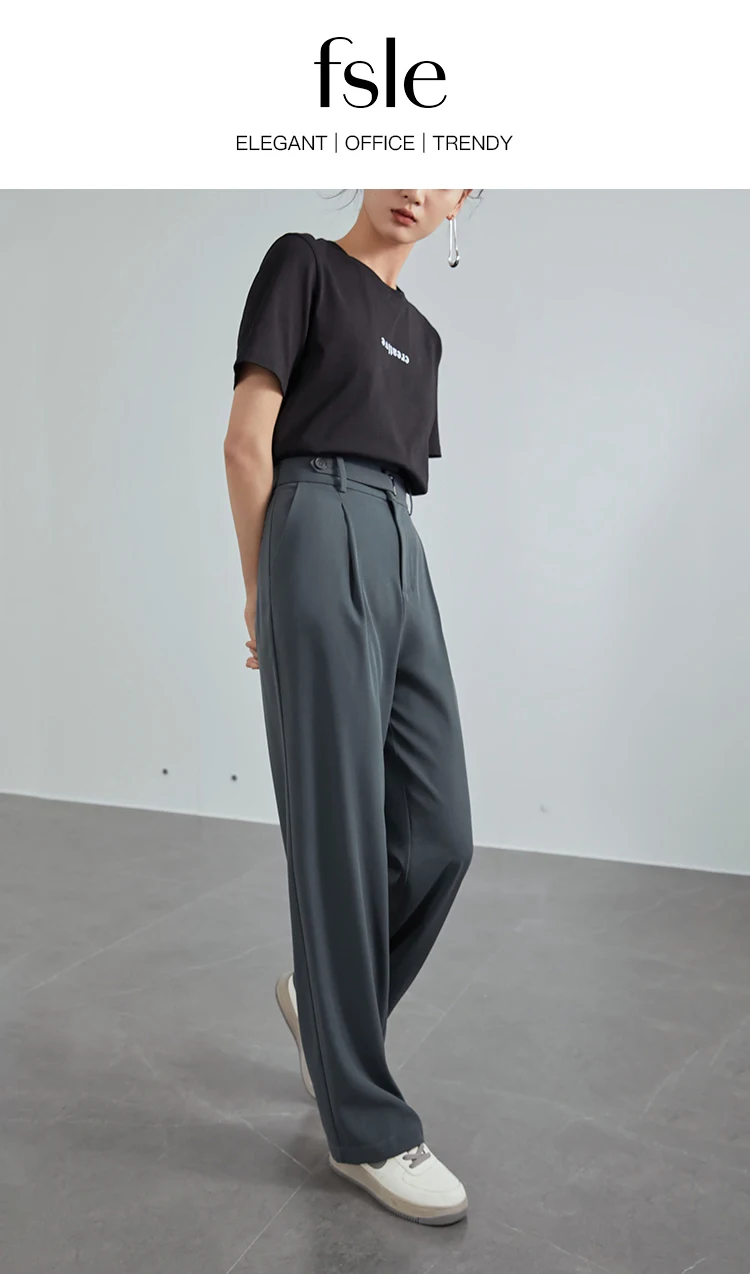 FSLE Office Lady Mopping Pants Women 2021 Summer Straight Loose Casual Suit Pants High Waist Drape Wide Leg Trousers