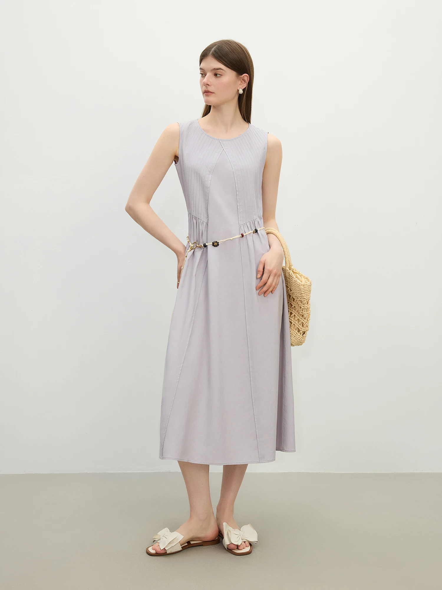FSLE Simple Sleeveless Linen Dress for Women – 2025 Summer New Collection Elegant Chic Long A-line Skirt 25FS12528