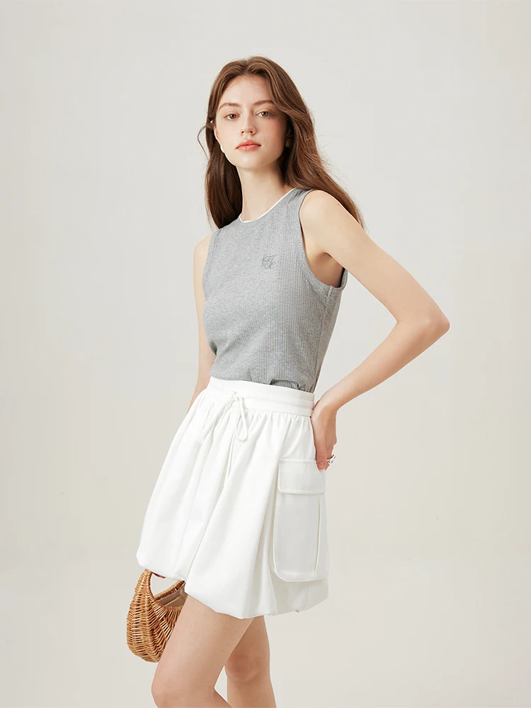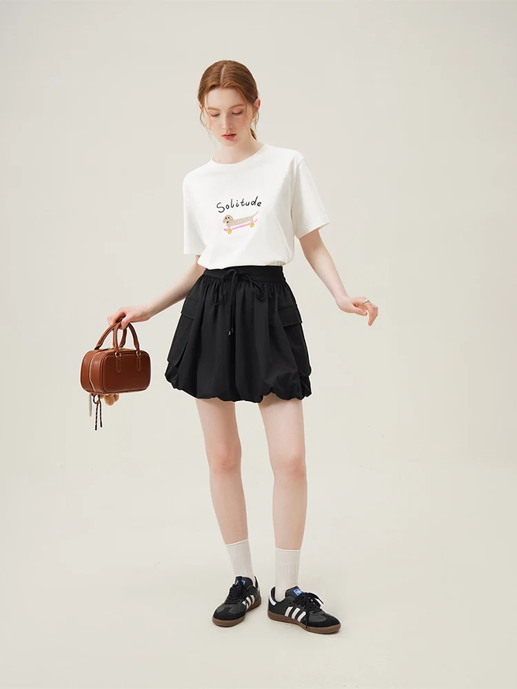 FSLE Summer A-Line Women Short Skirt 2024 New High Waist Bud Shape Versatile Casual Short Black White Skirt For Women 24FS12908