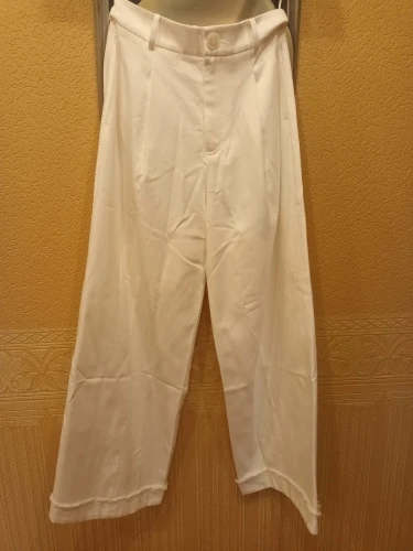 The trousers are beautiful, very stylish, soft silky fabric, perfect tailoring. For 85-66-90 and height 158, size S fits well, but maybe it was worth taking M. The issue is that there is an elastic band inserted in the back of the waistband, and it should stretch to accommodate a larger waist size. But the elastic is not inserted all the way into the back waistband, only in a small piece in the middle, and it can only add 2-3 cm at most, then it will be very tight. In general, you just need to gain a little weight, and that’s it…