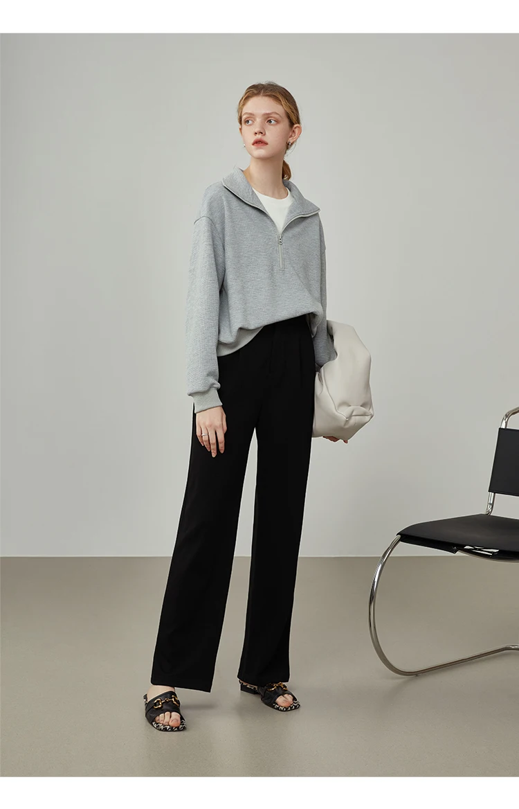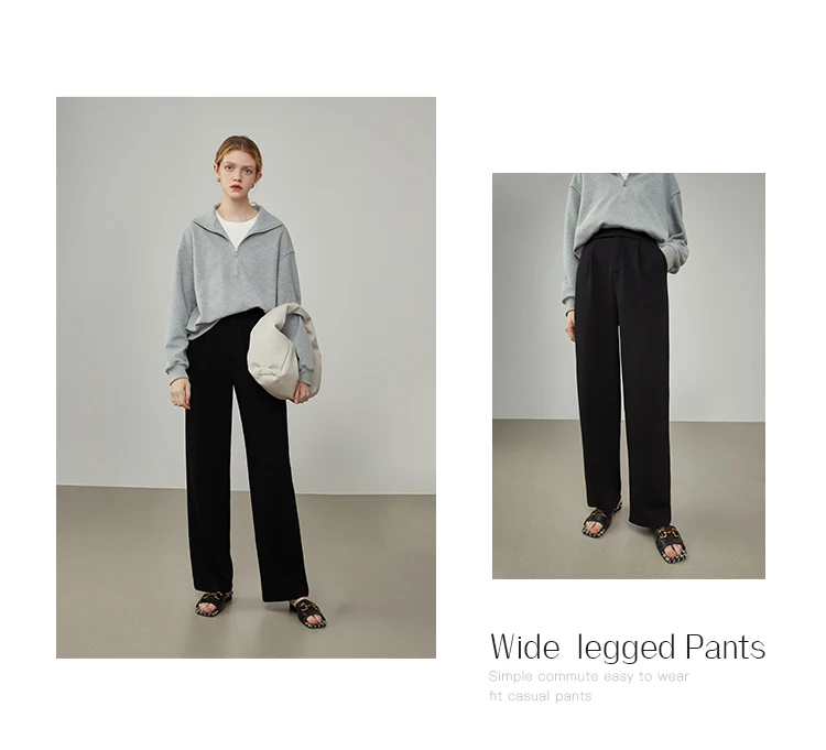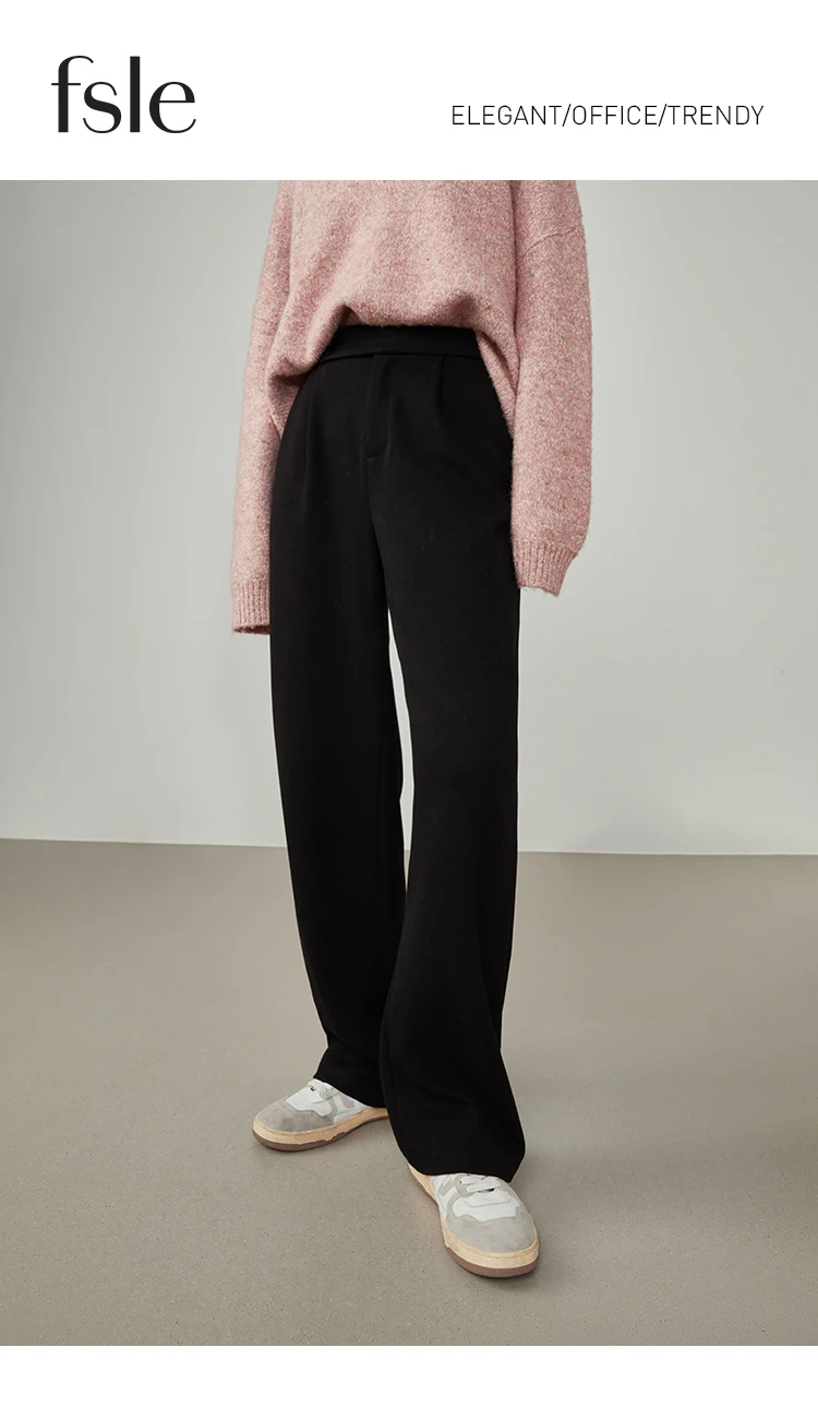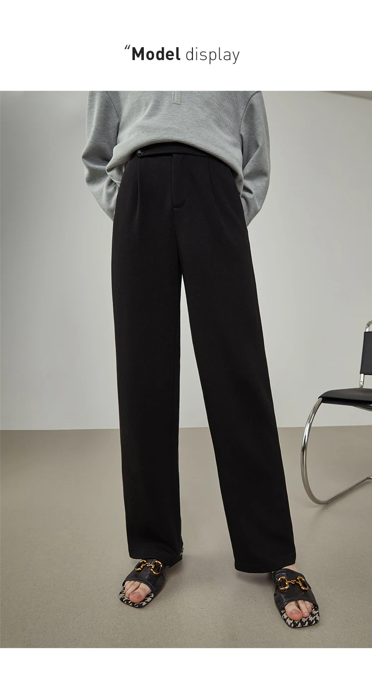 FSLE Women Straight Loose Pants Fall winter Drape High-waisted Wide-leg Pants Women Black Thin All-match Casual Trousers