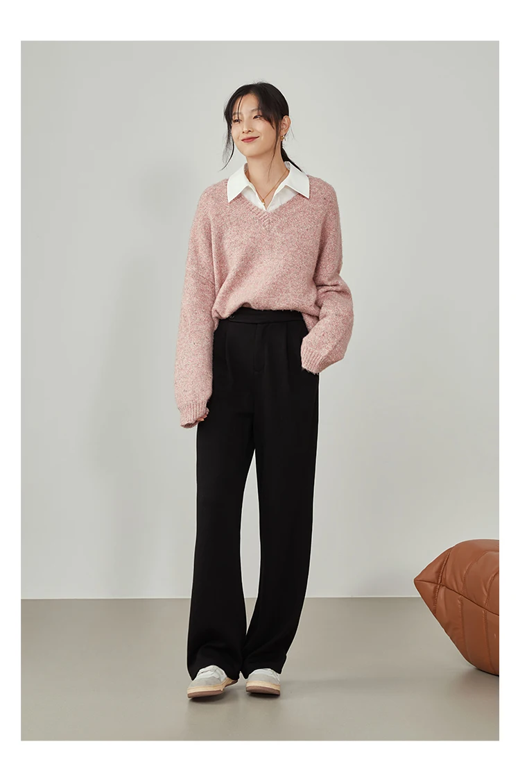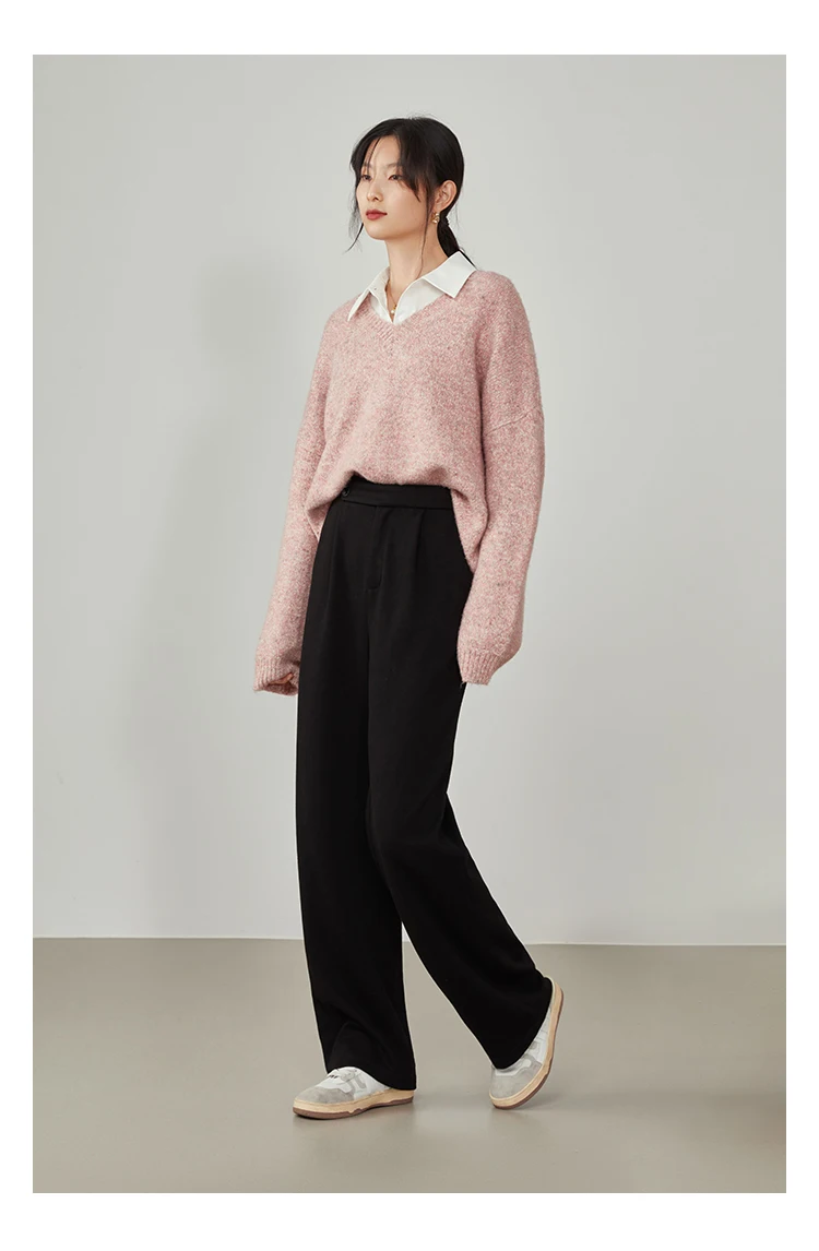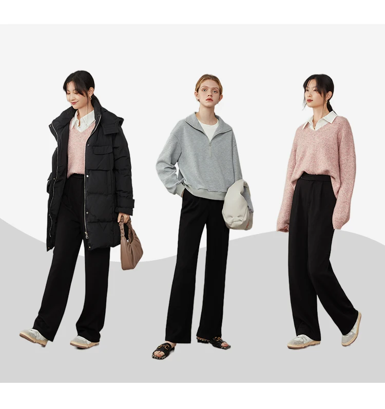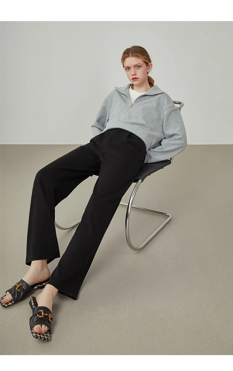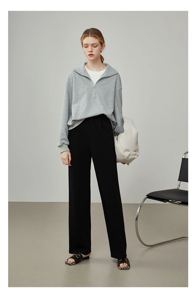 FSLE Women Straight Loose Pants Fall winter Drape High-waisted Wide-leg Pants Women Black Thin All-match Casual Trousers
