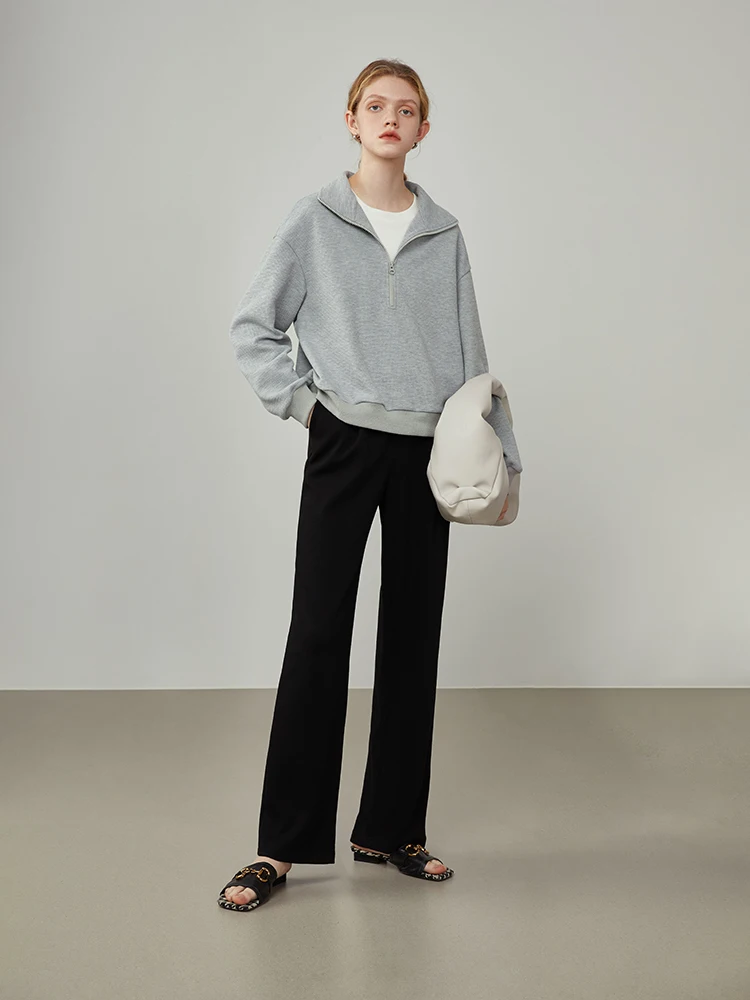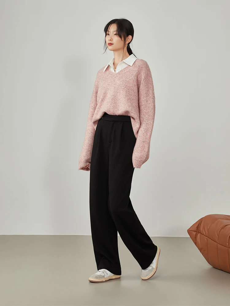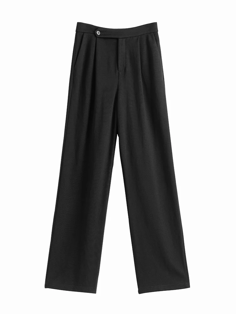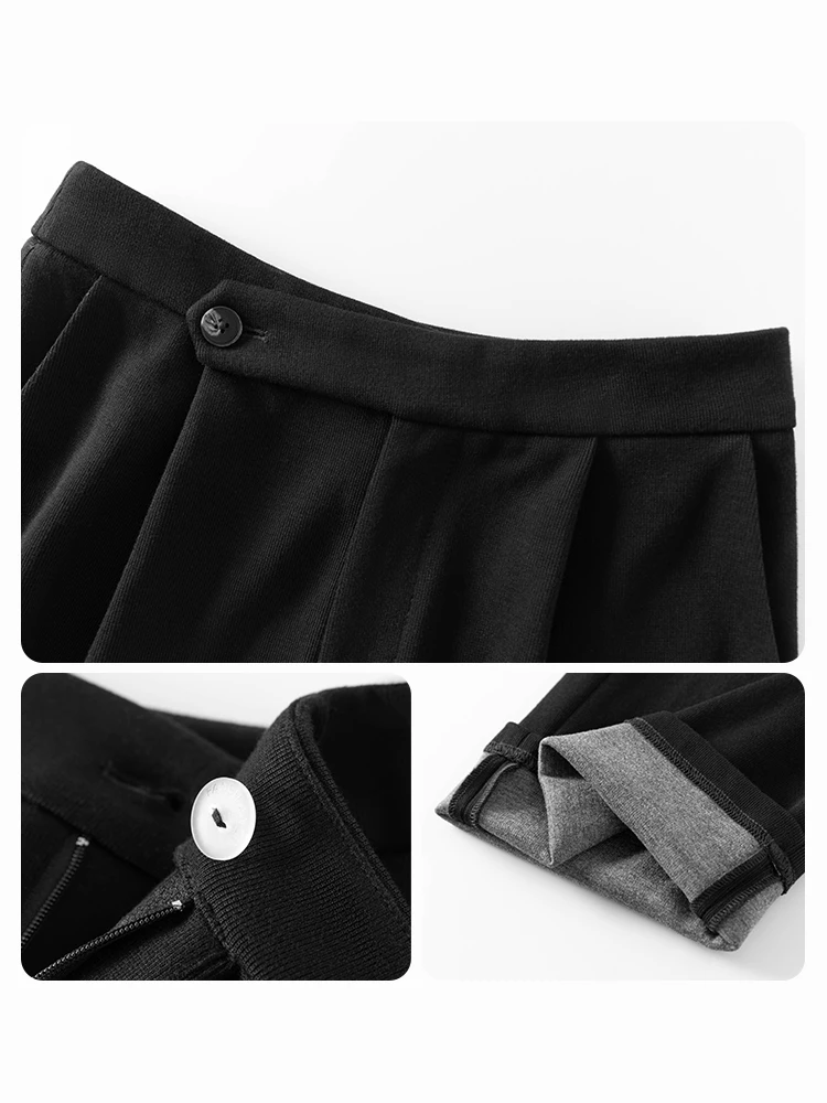 FSLE Women Straight Loose Pants Fall winter Drape High-waisted Wide-leg Pants Women Black Thin All-match Casual Trousers
