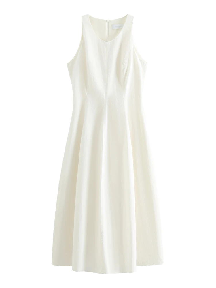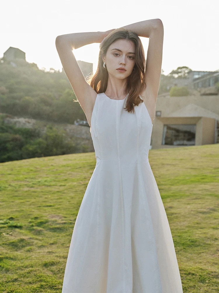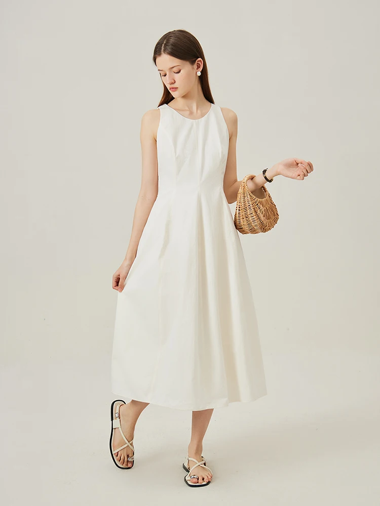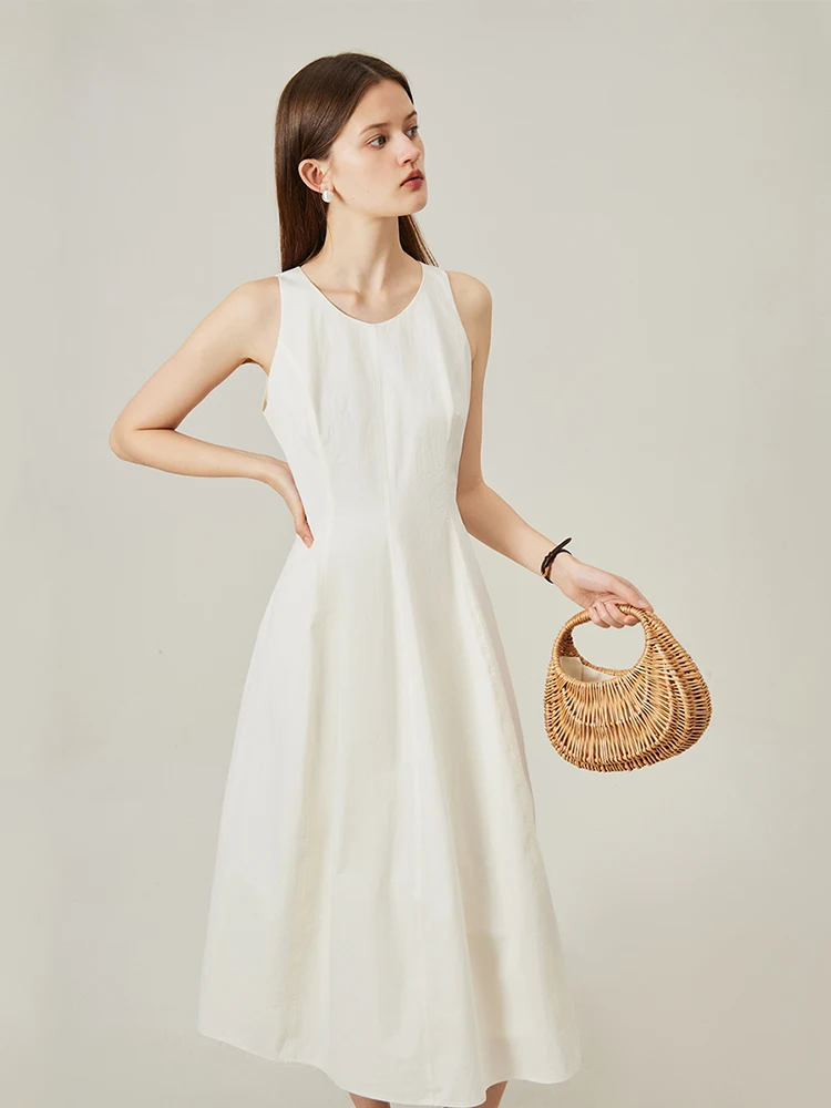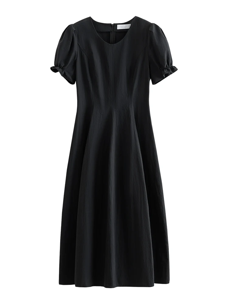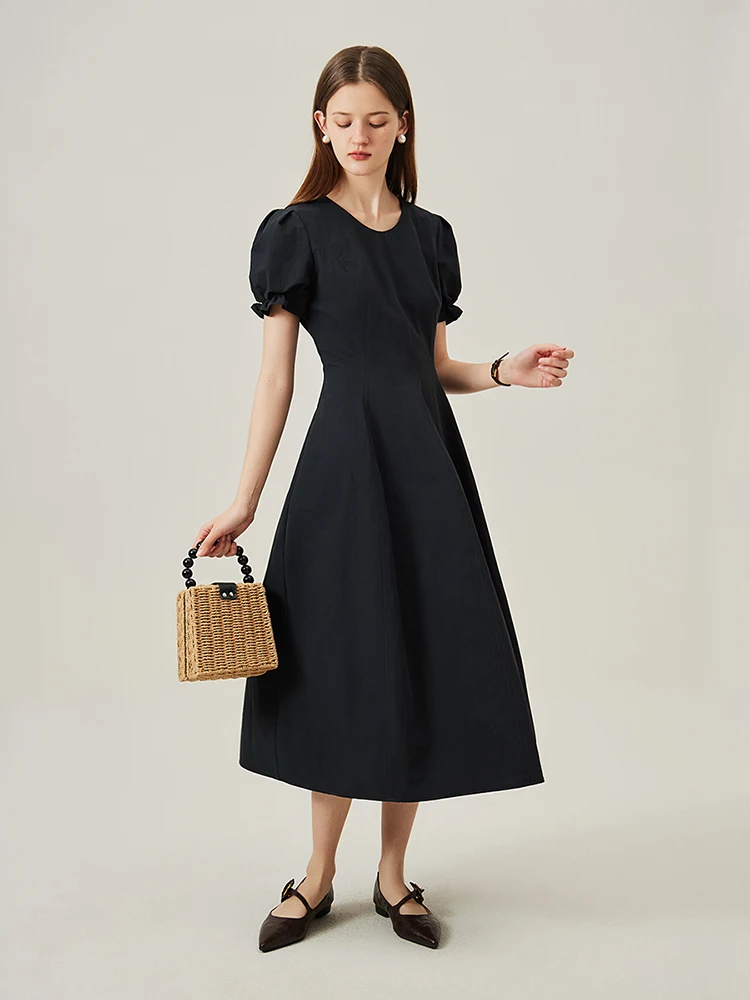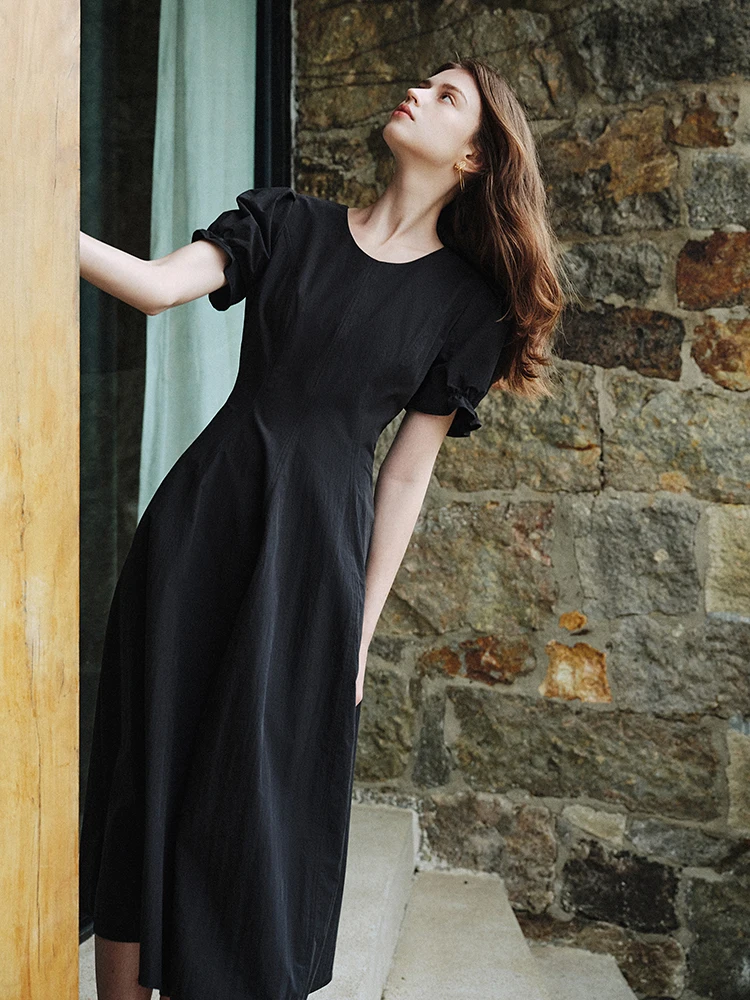 1 review for FSLE Women Summer Sleeveless Dress Cotton Long Temperament A-LINE Skirts Short Puff Sleeve Black Dress 24FS12489+24FS12730
