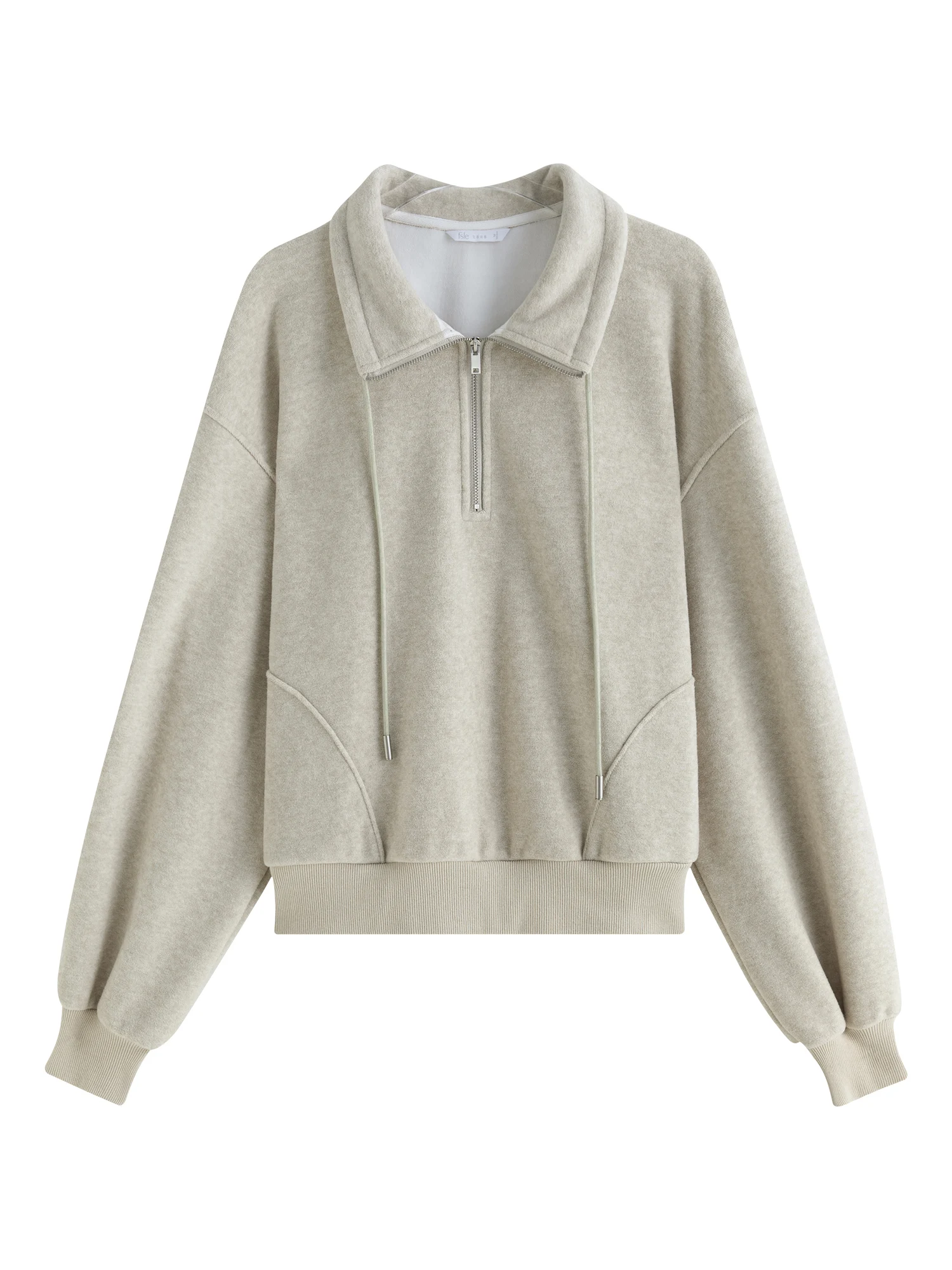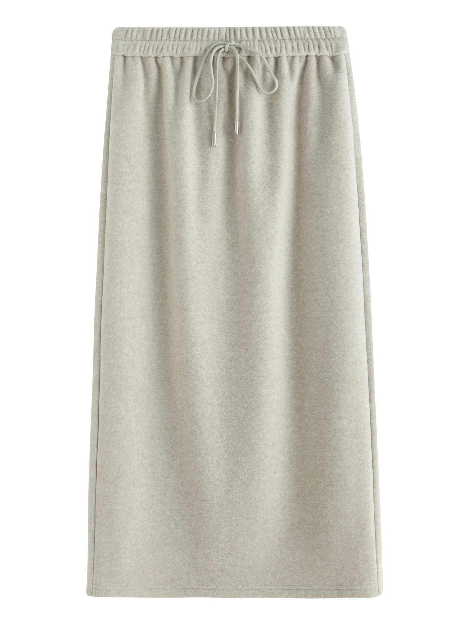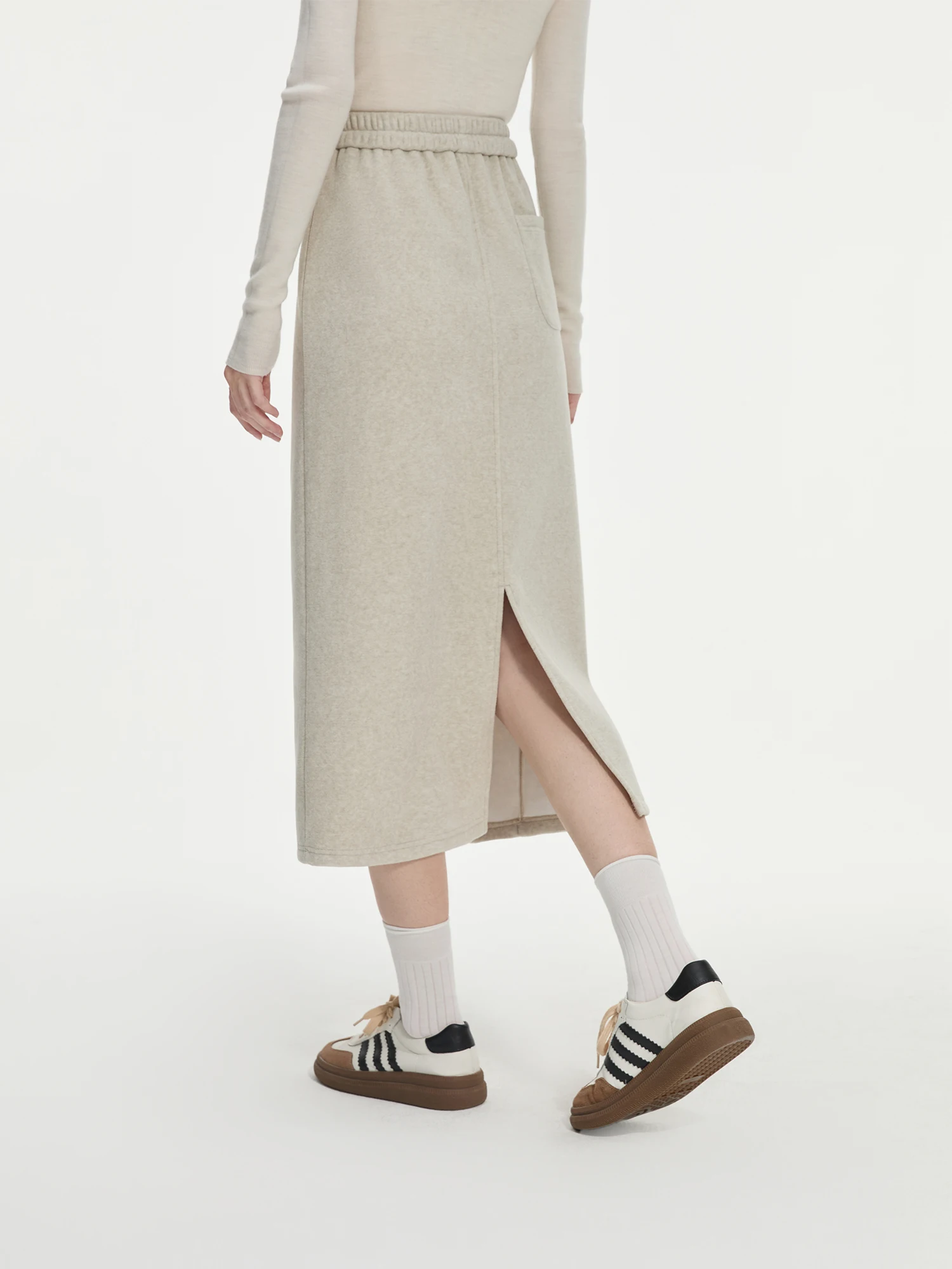 FSLE Women Sweatshirt Set Winter Thick Grey Commuter Sweatshirts Elastic Waist Long Spilt A-Line Women Skirt 24FS14491+24FS14492