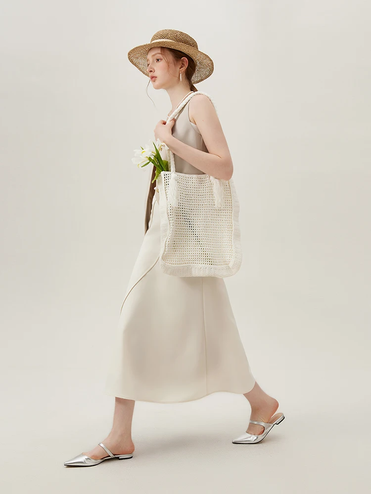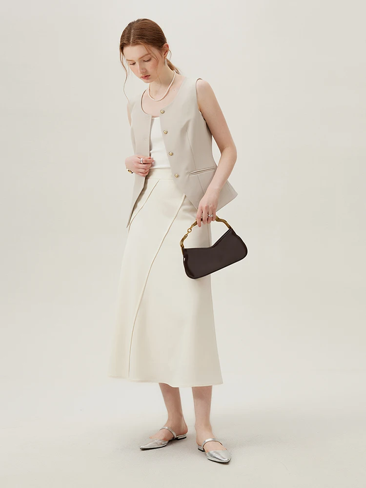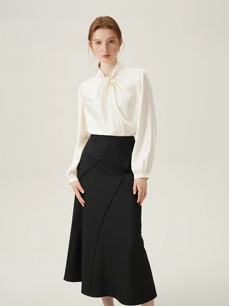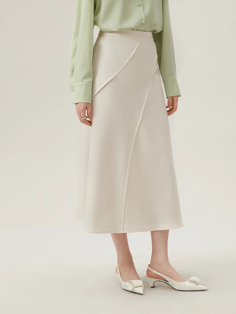 FSLE Zipper Waist Women Asymmetric Design Drape Long Skirt Office Lady Temperament Female Spring White A-LINE Skirts 24FS11105