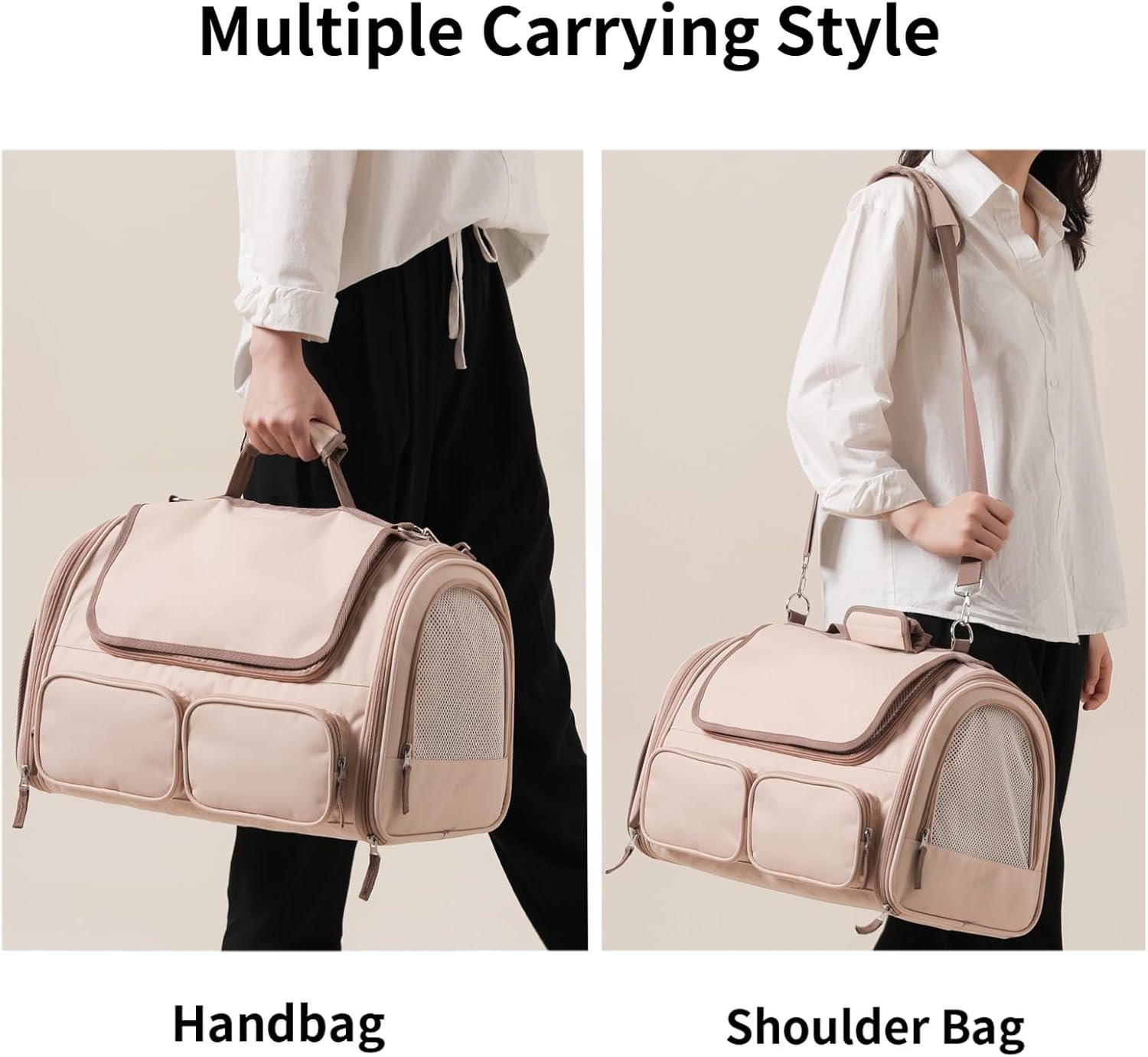 Pet Carrier Measuring Guidelines Before Purchase – The pet travel carrier is designed for small and medium pets within 17.5″L x 11.8″W x 11.4″H and 15 lbs. Please do not choose your carrier based on weight, recommanded reference your pet’s length and height in selecting a carrier size.