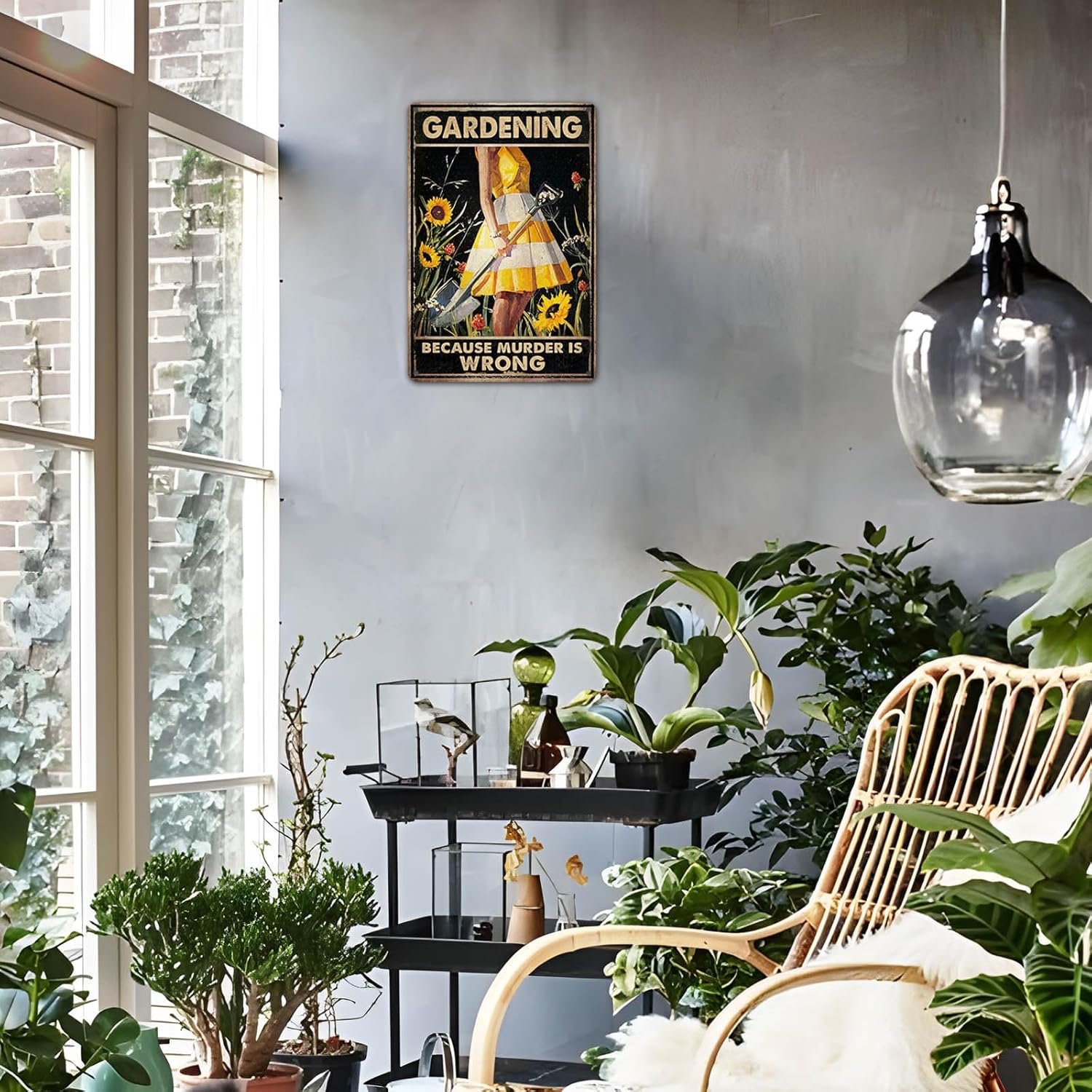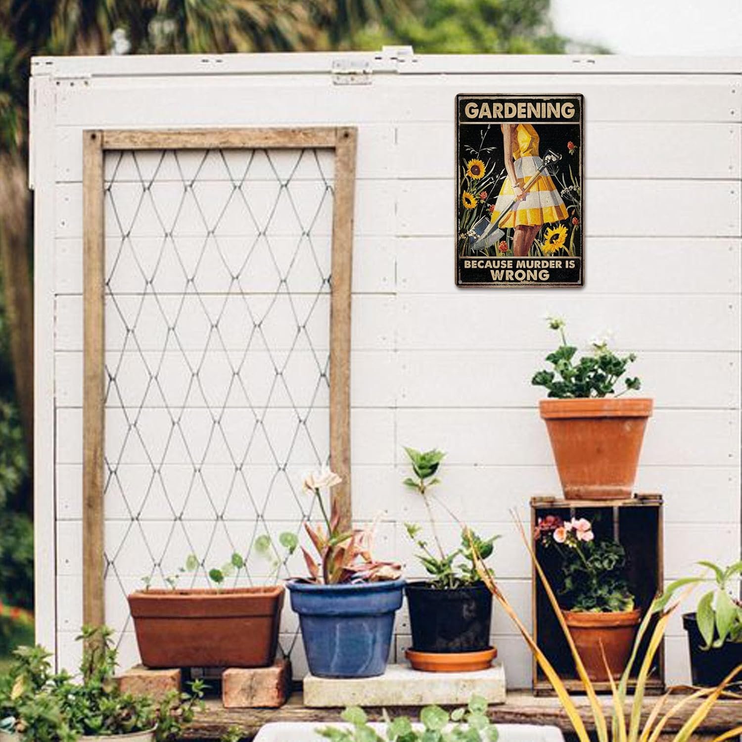 Unique Women’s Garden Gift This funny metal sign with the playful text “Gardening Because Murder Is Wrong” is the perfect gift for women who love gardening or quirky home decor. It adds a touch of humor to any outdoor space, including yard, backyard, patio, and porch. 🎁
