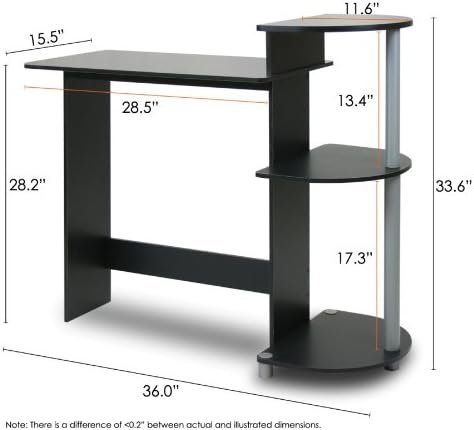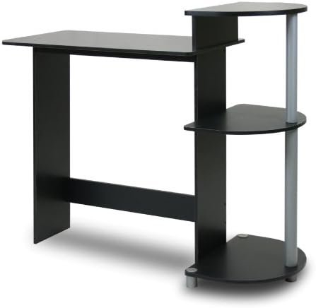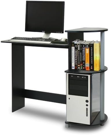 Furinno Compact Computer Desk with Shelves, Round Side, Black/Grey