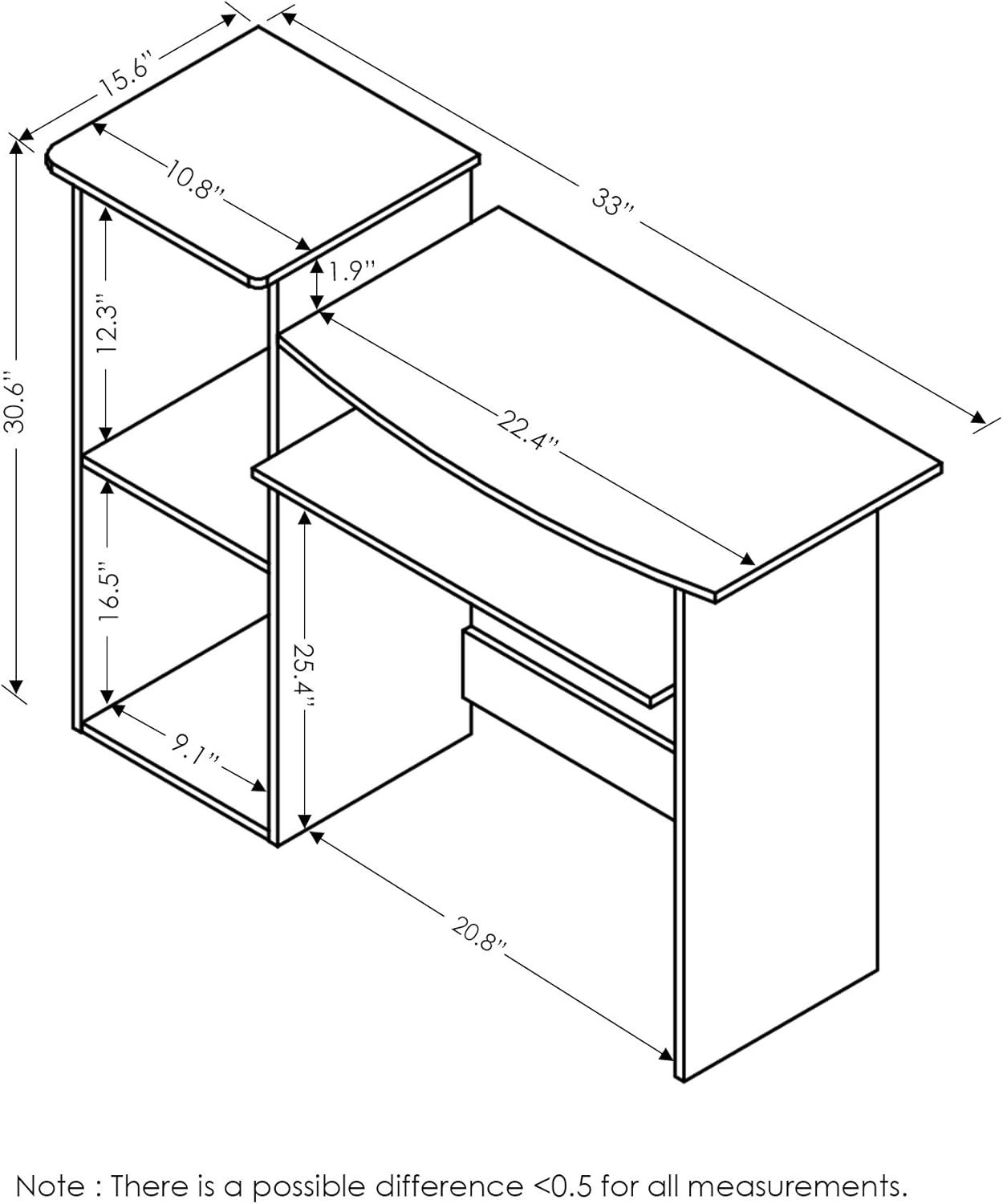 Some assembly required Please see instruction Product dimension: 33(W)x15.6(D)x30.6(H) Inch