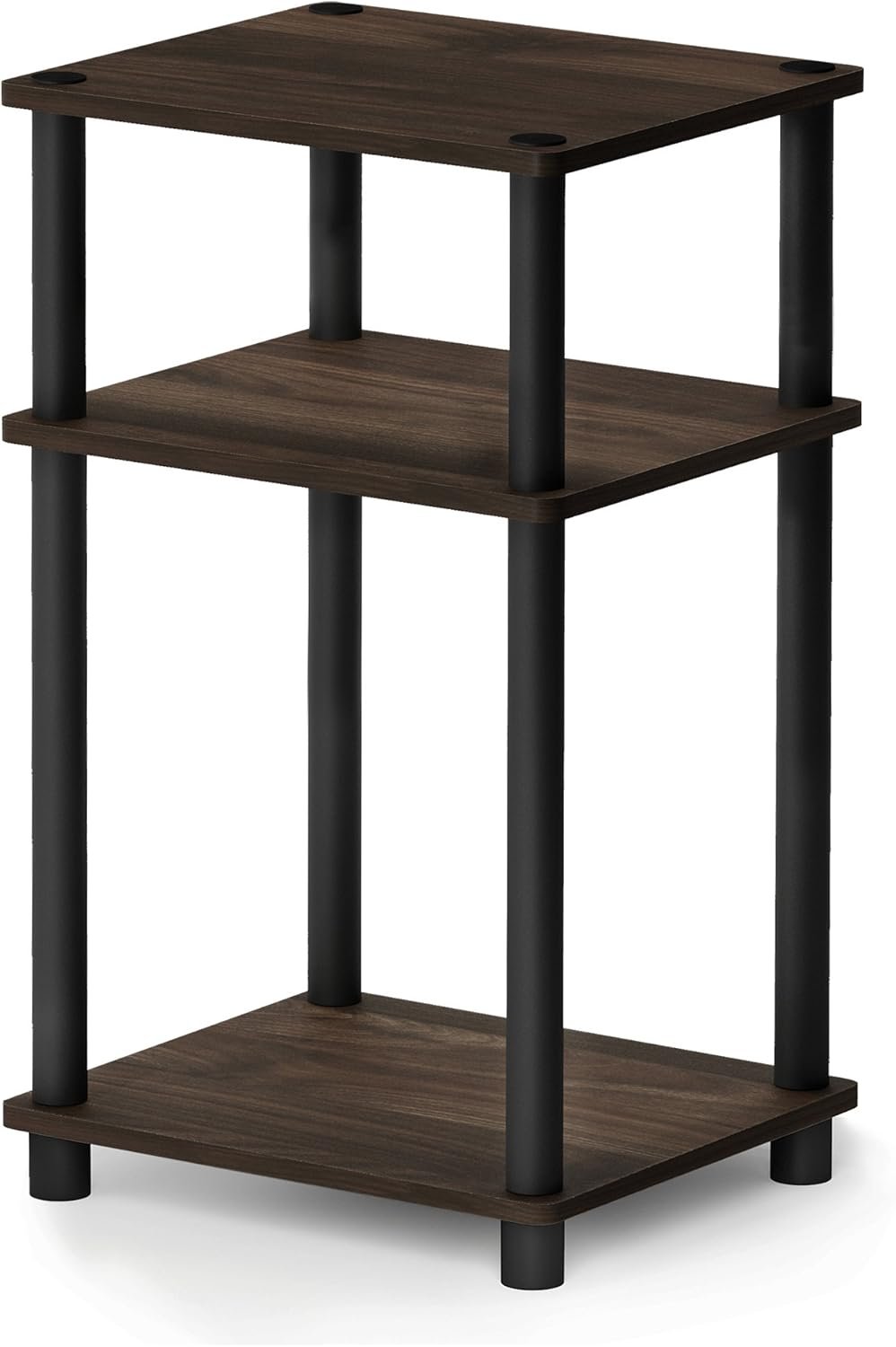 Furinno Just 3-Tier Turn-N-Tube End Table / Side Table / Night Stand / Bedside Table with Plastic Poles, 1-Pack, Columbia Walnut/Black