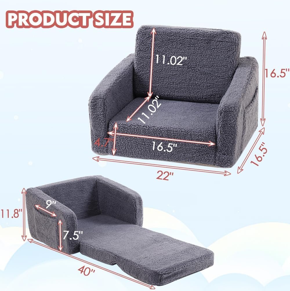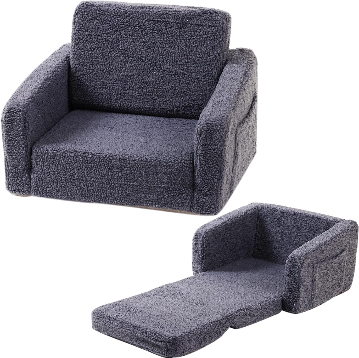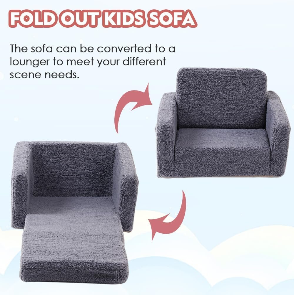 Furnishh Toddler Couch Sofa, Baby Couches Fold Out for Boys Girls, Kid Toddler Sofa Chair 2 in 1 Convertible Sofa to Lounger, Kids Couch Bed Fold Out for Playroom, Grey