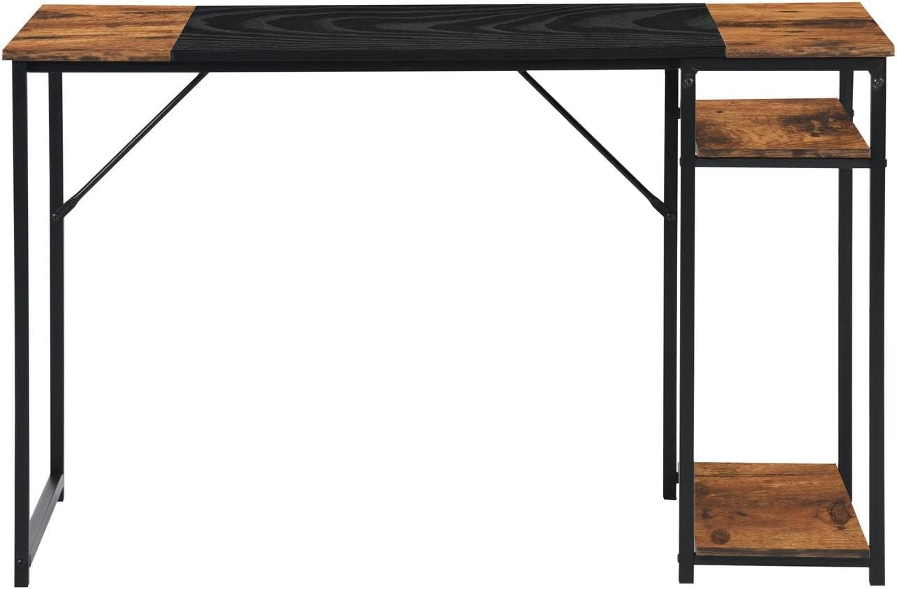 FurnitureR 55 inch Study Writing Table with Storage Shelves Space Saving for Home Office, Modern Style PC Metal Frame Computer Desk, Black&Brown