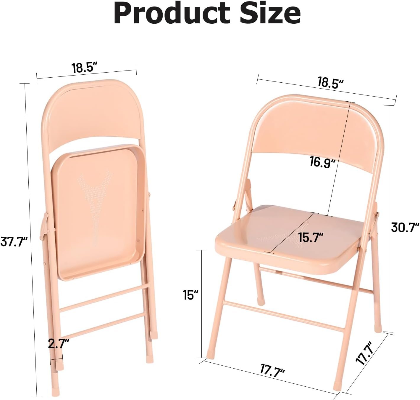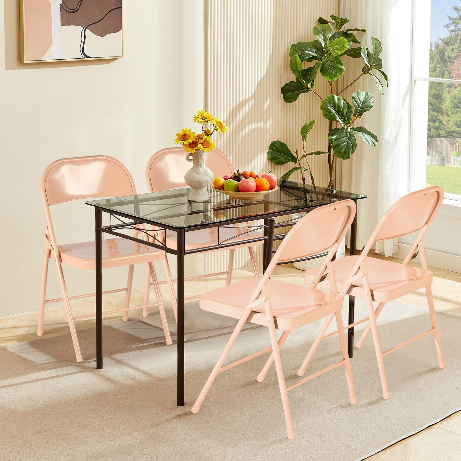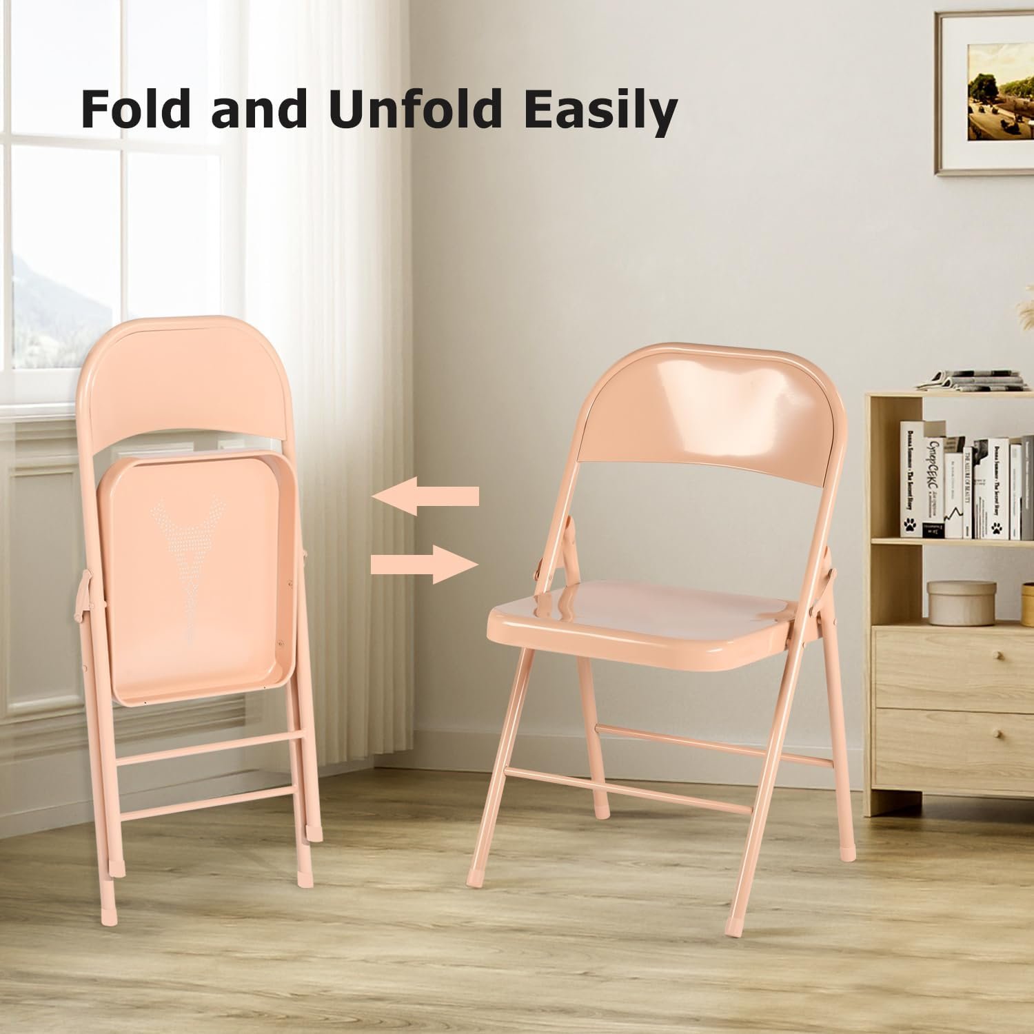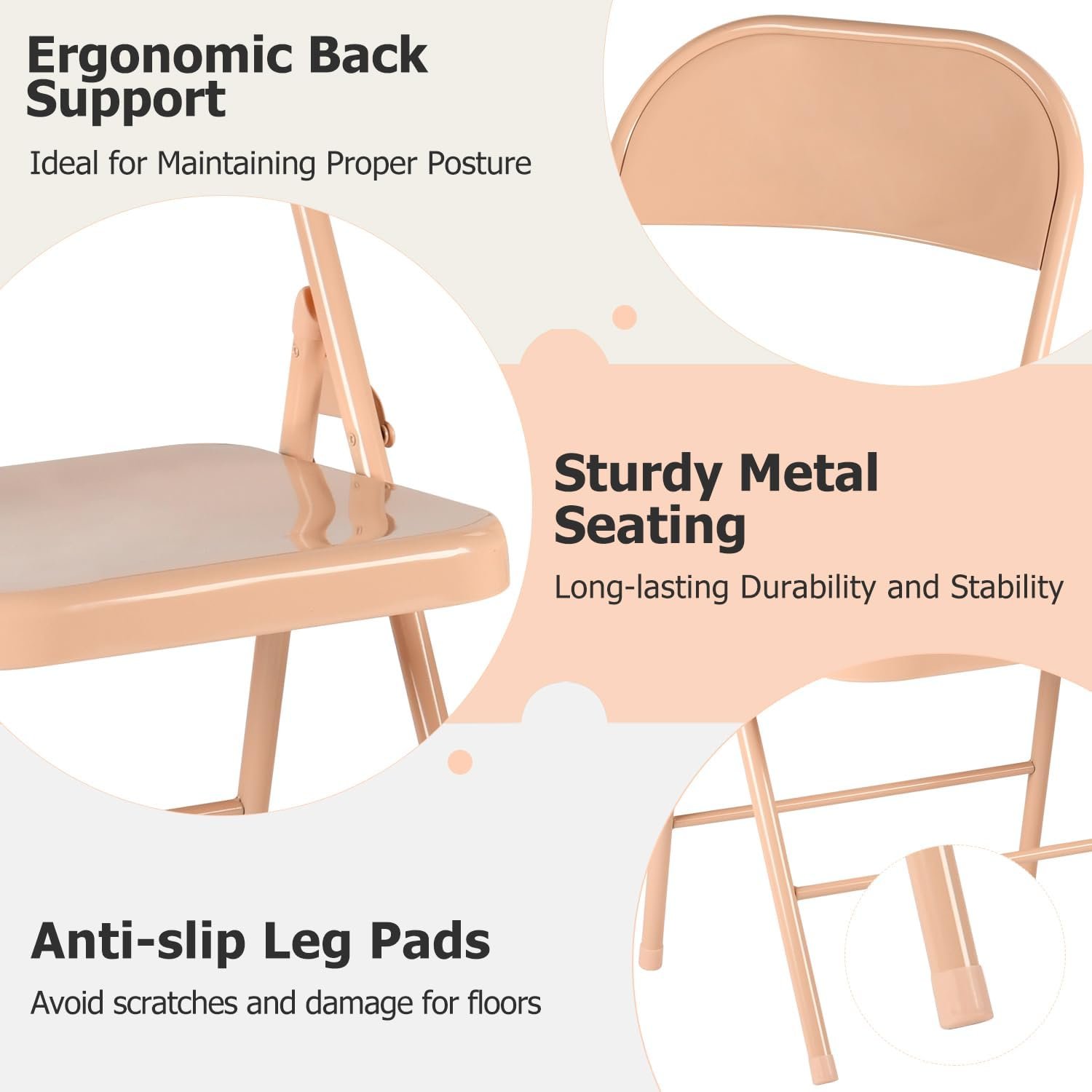 FurnitureR Folding Chairs Set of 4, Metal Foldable Side Chairs, Portable Stackable Commercial Seat with Steel Frame 350lb. Capacity, Indoor Outdoor for Parties, Home, Office, Apricot