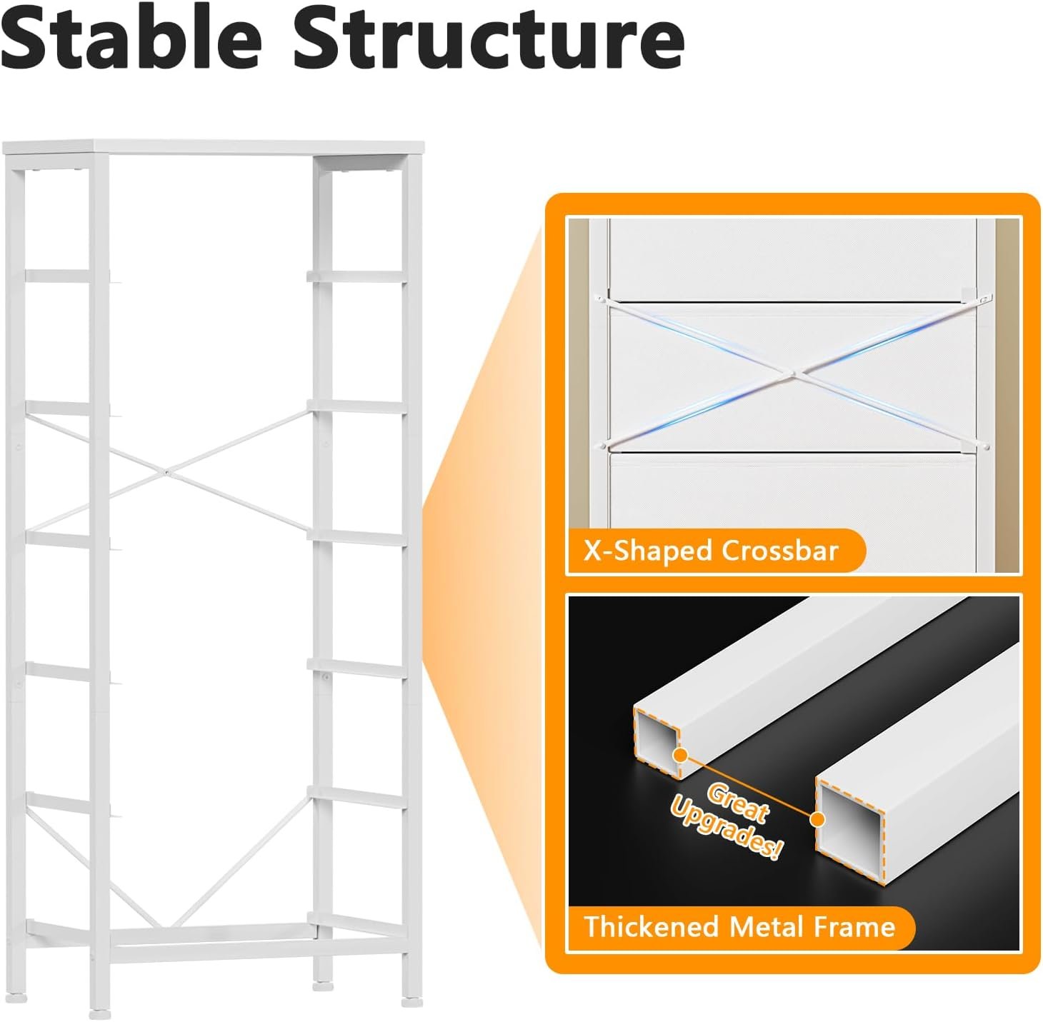 【Reinforced and Sturdy End Table】Our clothing storage stands out with its sturdy construction, featuring a reinforced metal frame. The back of the bedside table is equiped with more reinforced X-type crossbar, which offers high strength support and ensure years of use. Adjustable feet can adapt to uneven ground, will make it more stable.