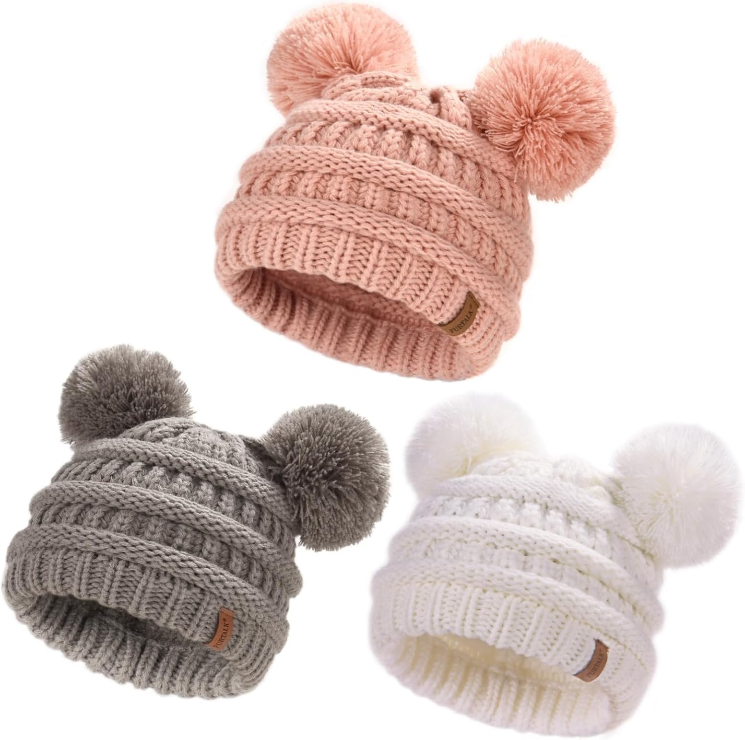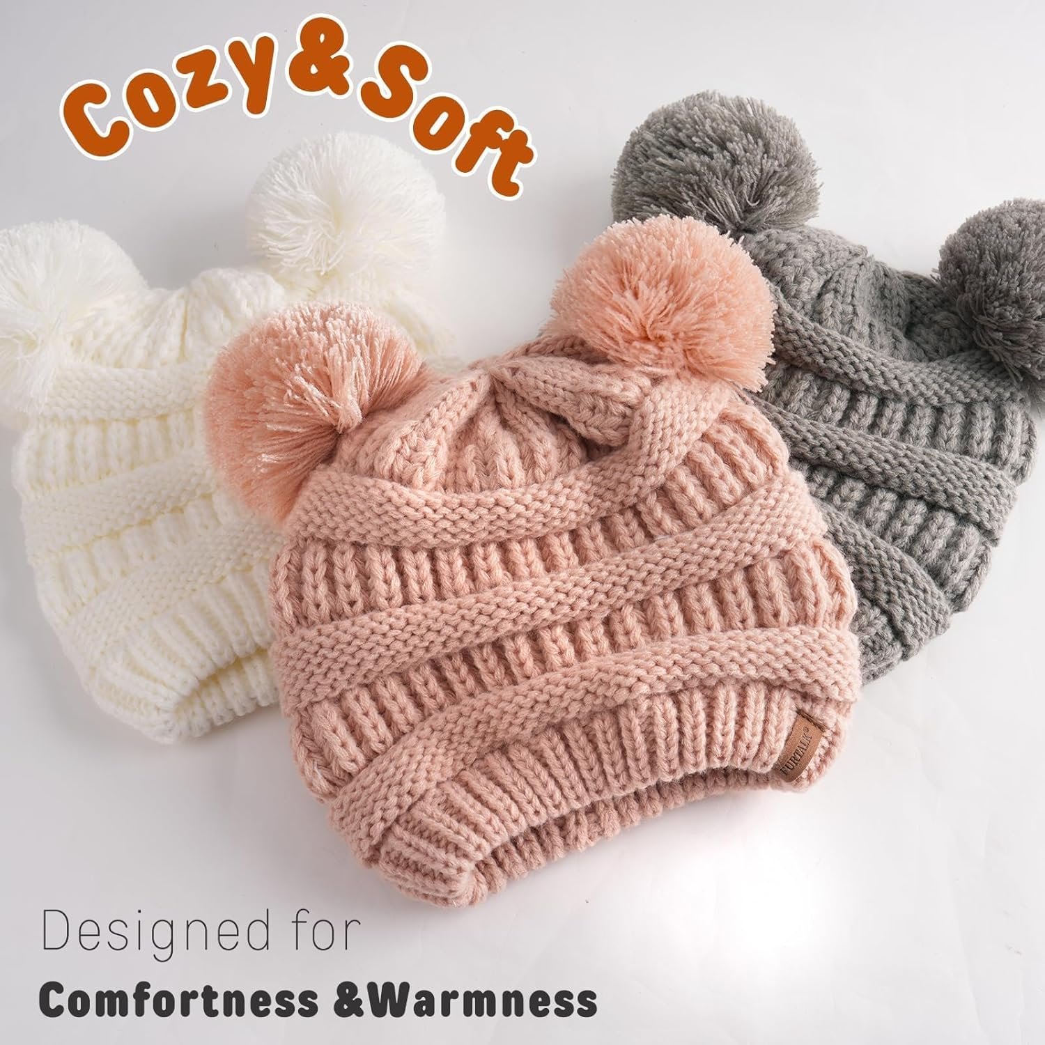 FURTALK Baby Winter Knitted Beanie Hat Soft Warm Lined Pom Pom for Infant Toddler Skull Cap