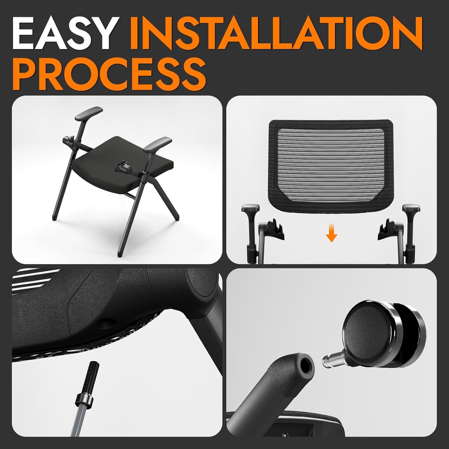 FYLICA Foldable Office Chair Set of 2 with PU Wheels Ergonomic Mesh Bouncing Back, Stackable Conference Room Chair, Office Guest & Reception & Meeting Chair (Black)