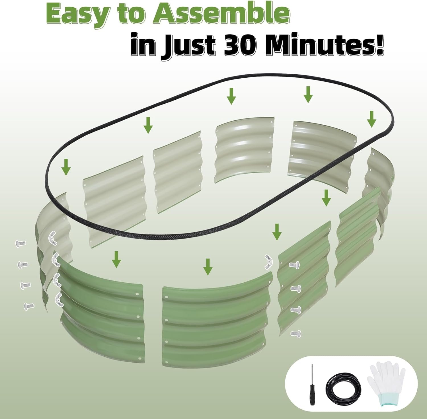 Durable & Corrosion-Resistant Construction: Planter boxes crafted from 0.7mm thickness galvanized steel with anti-rust spray coating. The oval joint design distributes pressure evenly, outperforming standard 0.3mm beds for superior durability, weather resistance, and multiyear reuse