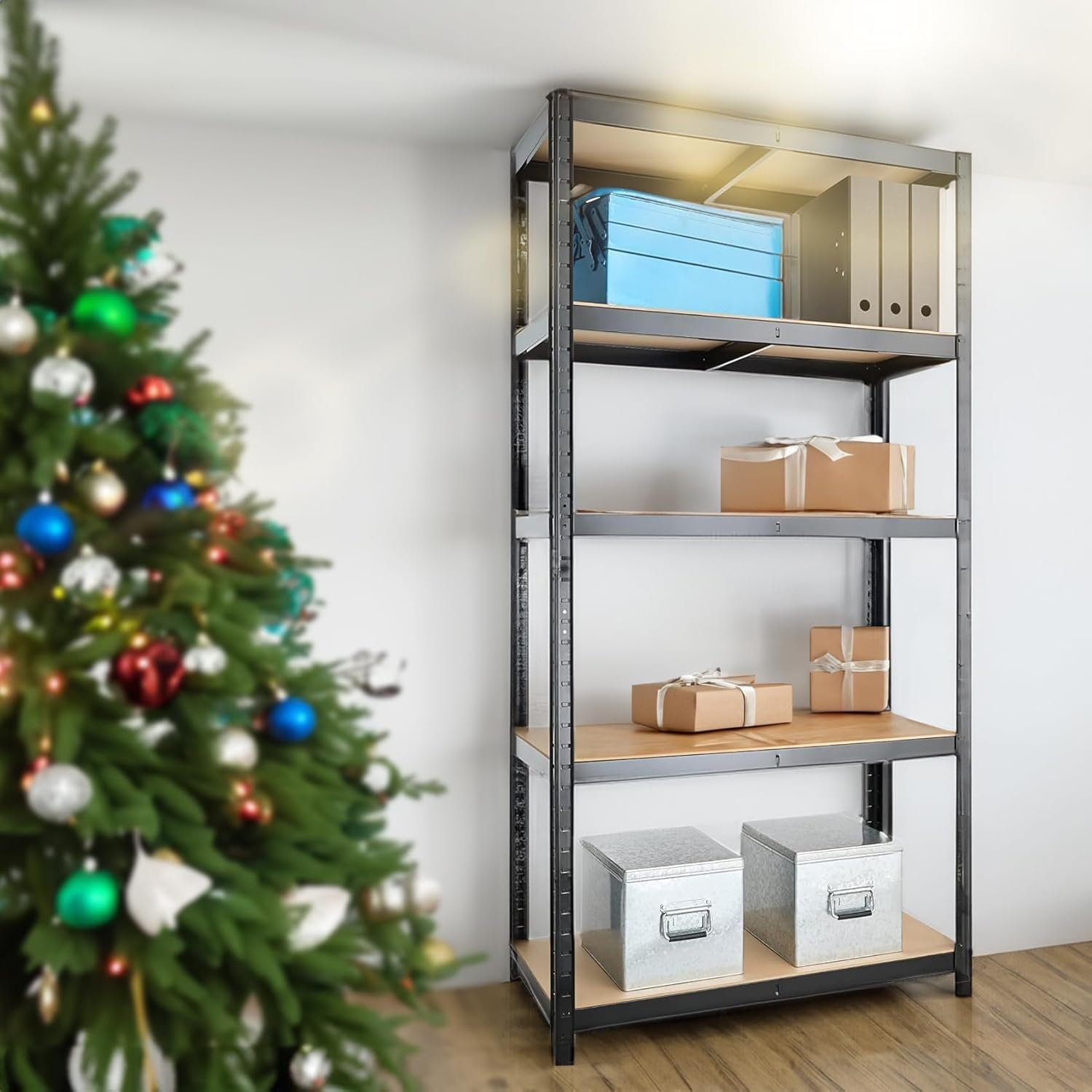 Space-Saving Shelving: This garage racking system is designed to maximize your storage space. With its 5-tier design, you can store a variety of items, from tools and equipment to pantry items.