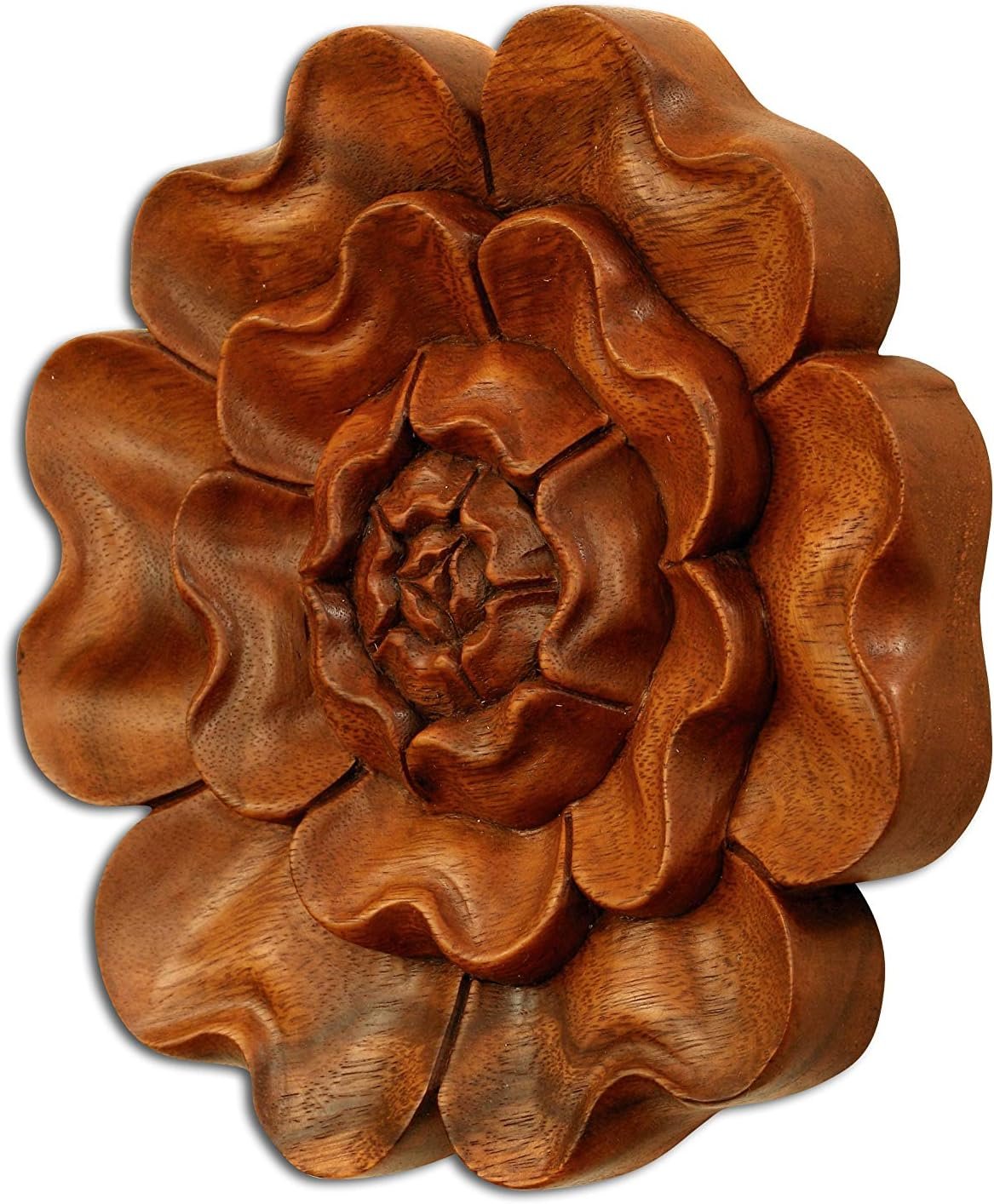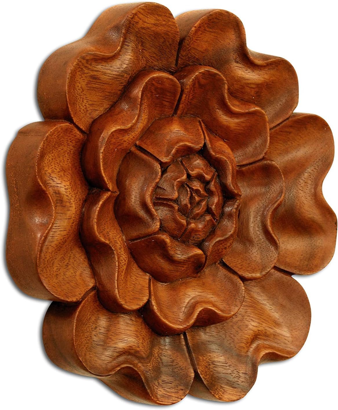 Take note from nature as you grow. The water lily is a sacred flower that allegorically epitomizes the ancient art of mindfulness and meditation. Carved from suar wood and shaped like a blooming lotus, this handmade wooden plaque takes decorative form to aesthetically promote a serene state of peace.