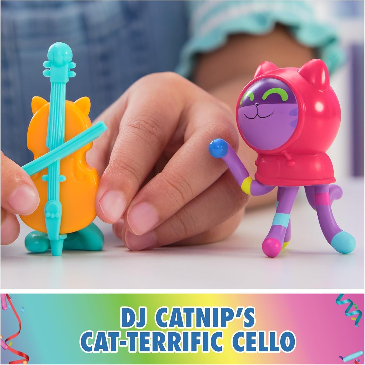 Step into the magical world of Gabby’s Dollhouse with the cat-terrific Story Figures Gift Pack! Featuring Pandy Paws, MerCat, Cakey, Baby Box, Kitty Fairy & DJ Catnip, along with 6 meow-mazing pretend play dollhouse accessories, like a rocket ship bouncer, a “dancing” cactus, a cat-tastic treasure chest, a cello with a movable bow, a cake mixer and a spa chair with a movable hair dryer canopy! Gabby’s Dollhouse toys for girls & boys are gifts for kids who are fans of the hit Netflix series and enjoy building pretend play doll house worlds. Make their entry into dollhouse play memorable with a world of lovable toy figures, dollhouse accessories and dollhouse furniture to collect and configure! Build your world with house kit essentials like a play kitchen or a music room, and tons of items to collect, like an awesome cruise ship toy, a mermaid themed pool and the all-new Party Room Playset – dollhouse attic with an indoor skate park, and super cute dollhouse balconies with mini fidget toys, that provide satisfying sensory play, and work seamlessly with both versions of the dollhouse!
