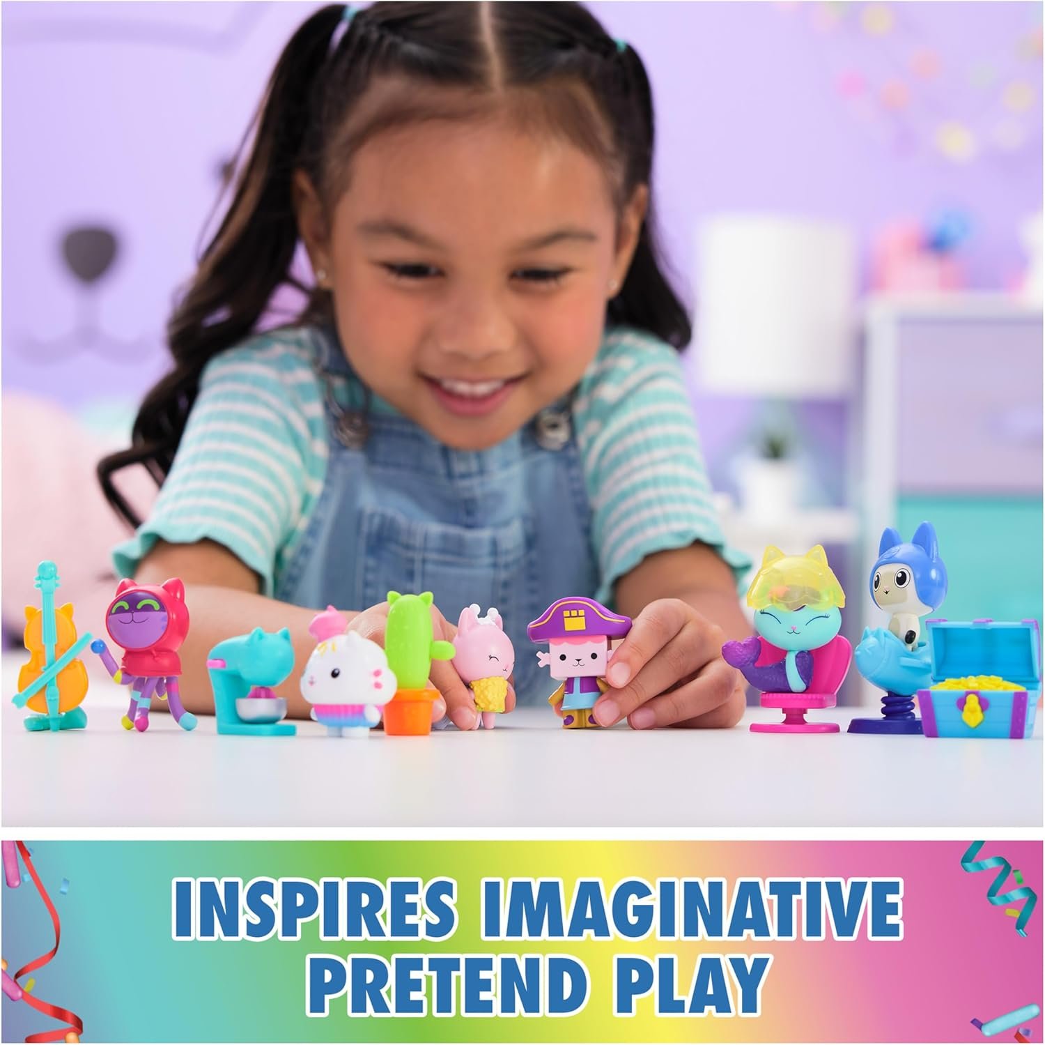6 COLLECTIBLE FIGURES: Set includes 6 Gabby’s Dollhouse figures & 6 cat-terrific dollhouse accessories, like a rocket ship bouncer, a “dancing” cactus, a spa chair & so much more