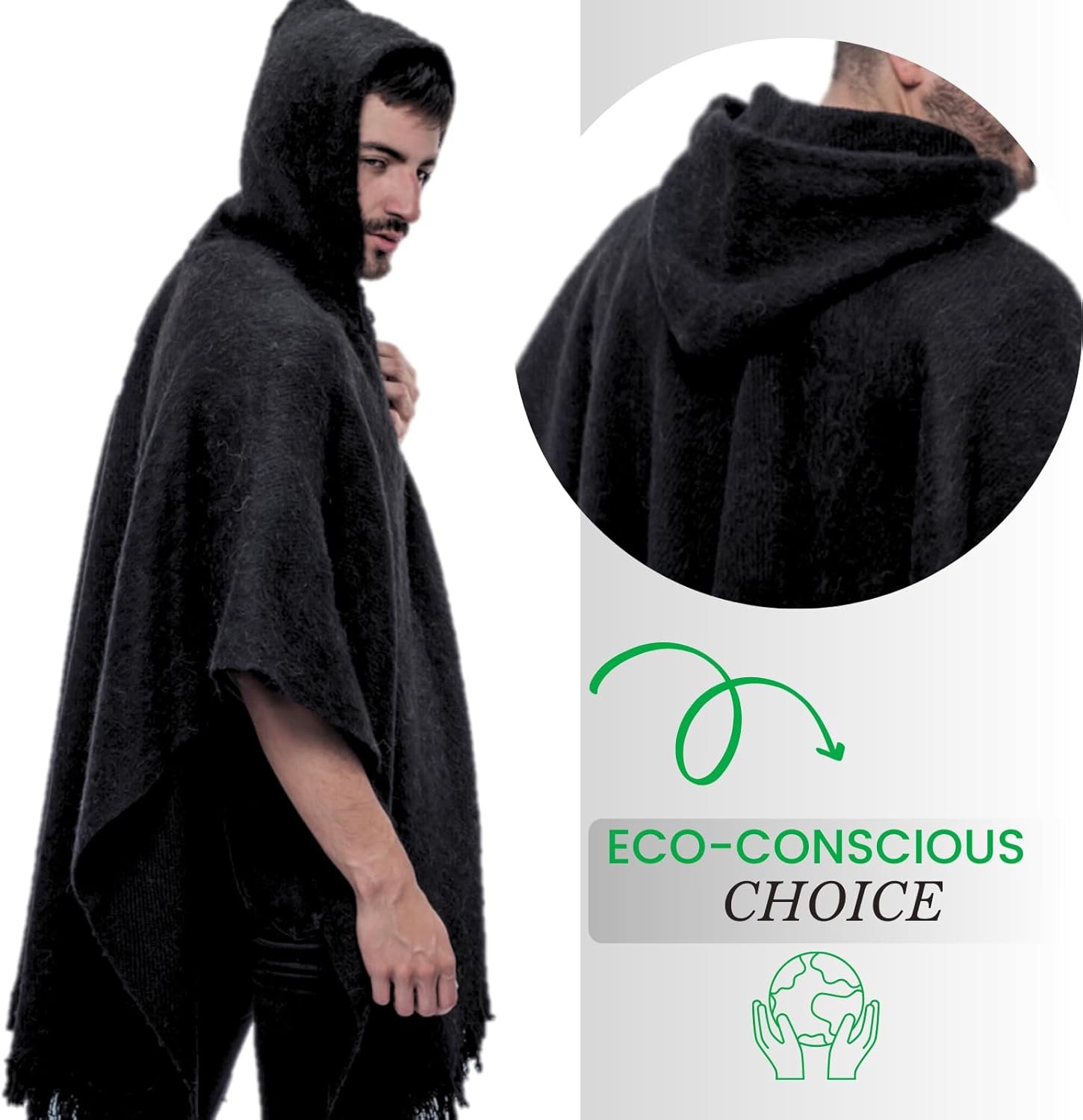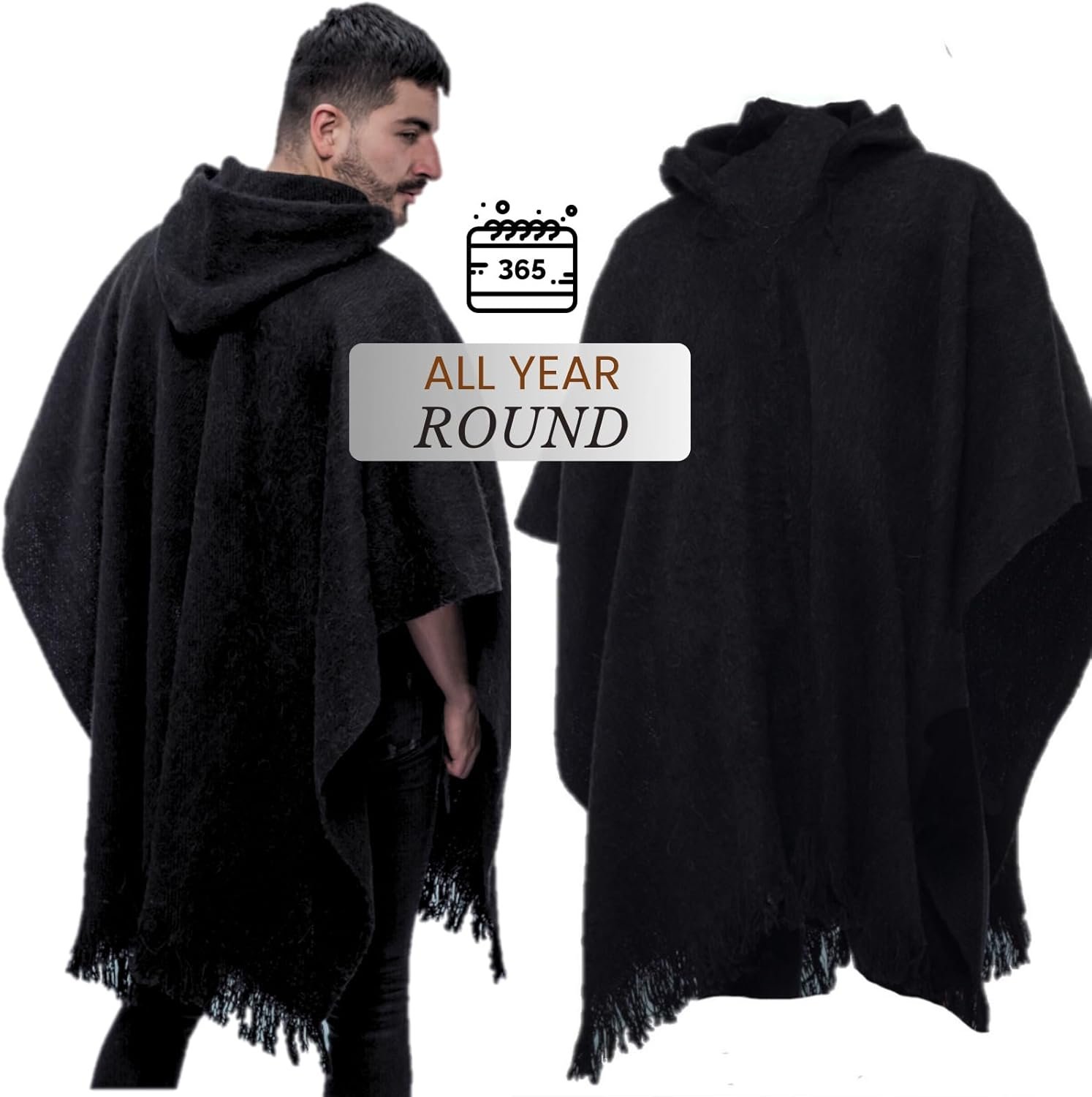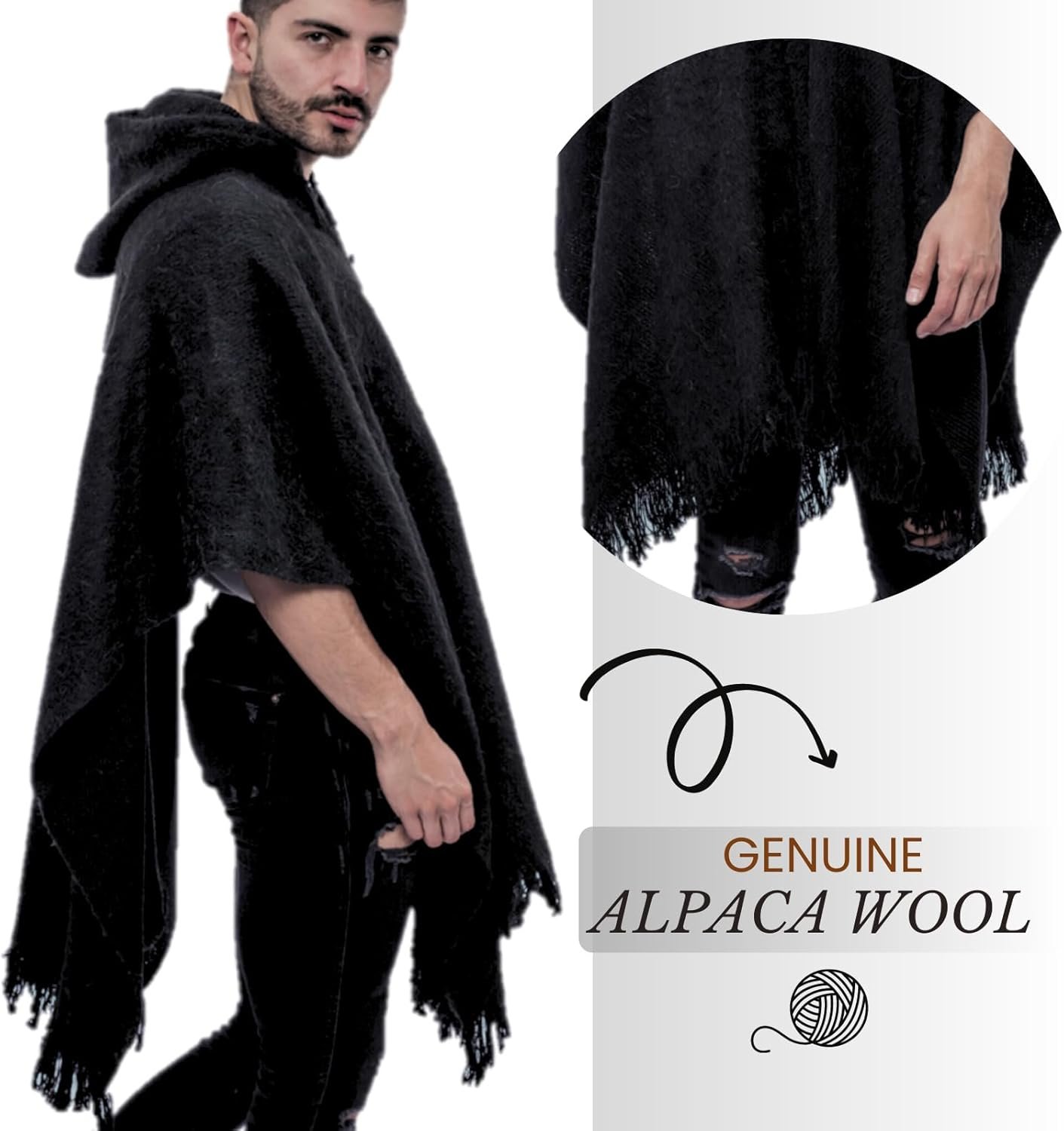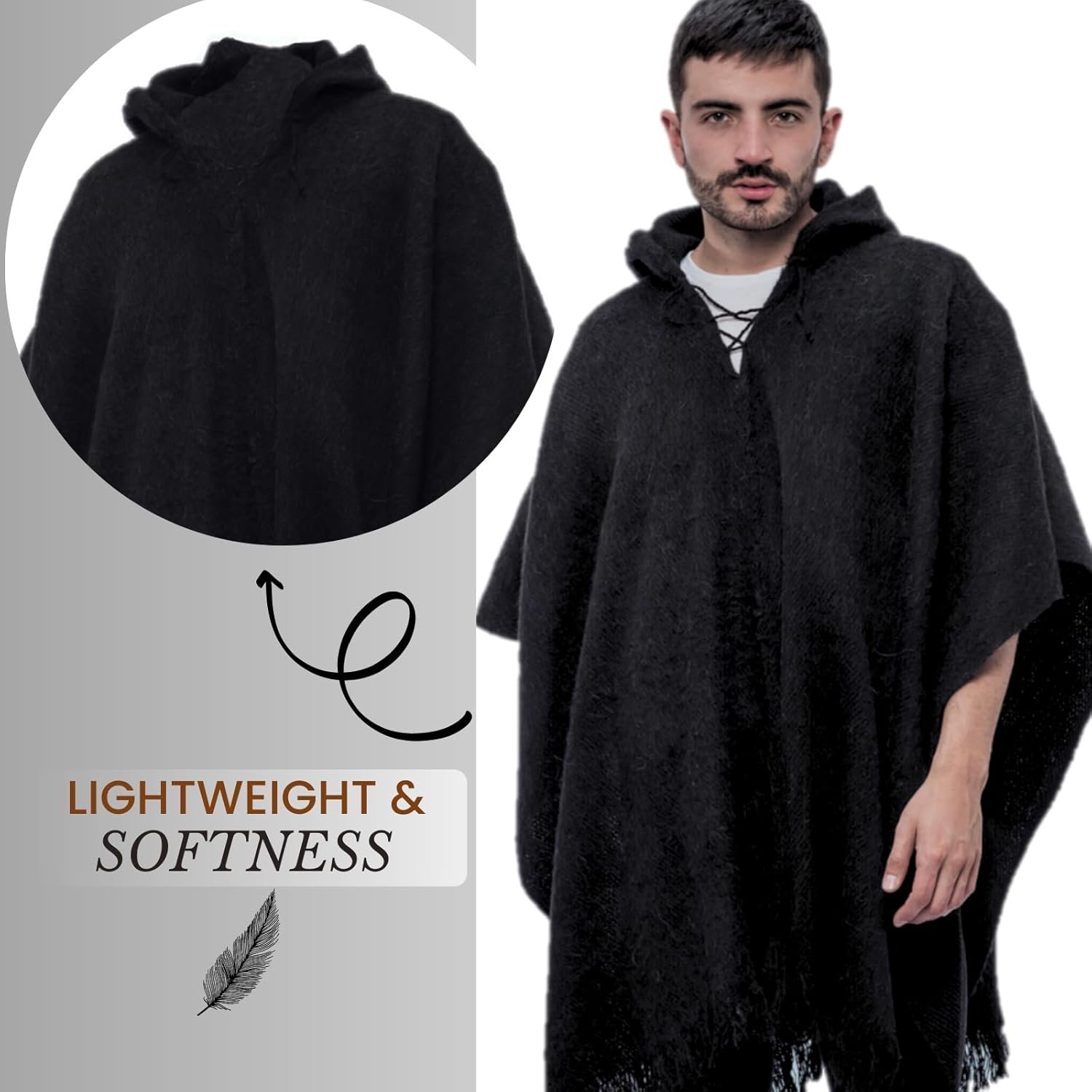 Gamboa Alpaca Poncho Mens Ponchos Adult Pancho Mexican Cloak with Hood Cowboy and Western Poncho Blanket