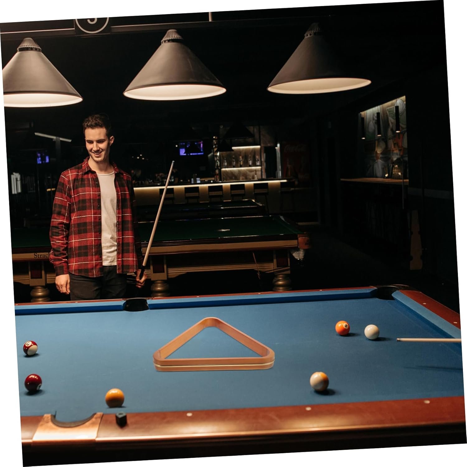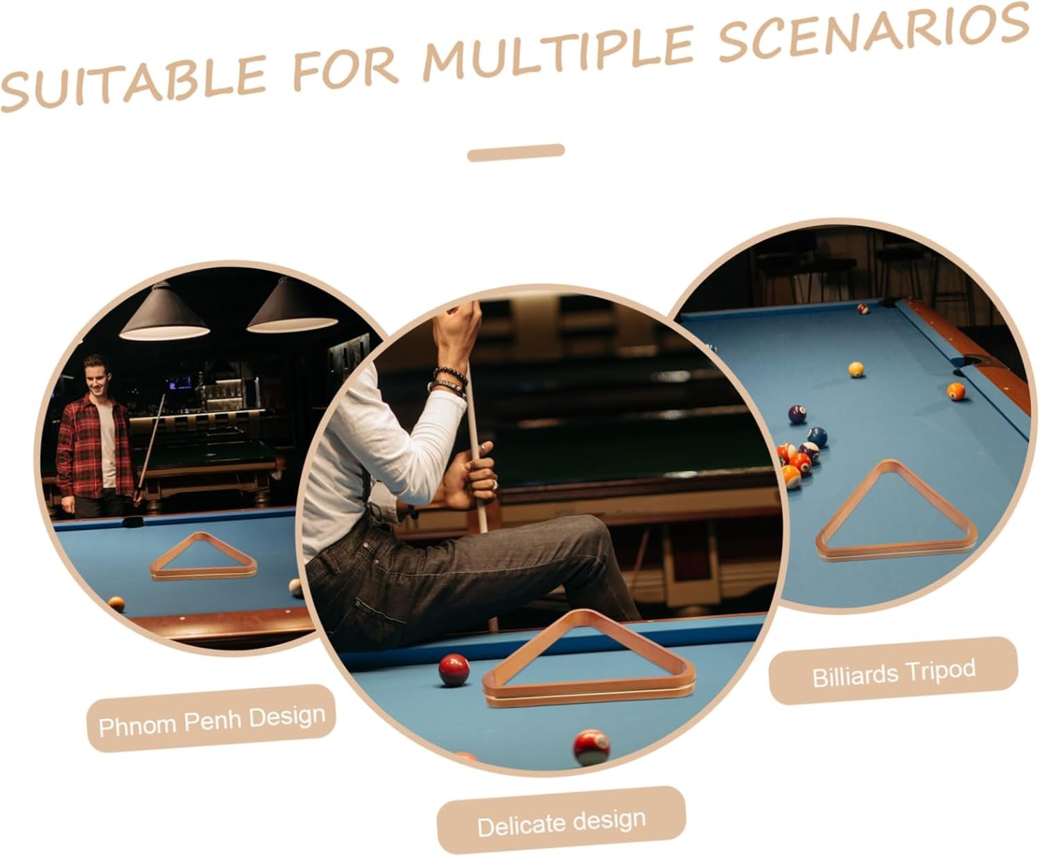 billiard balls holder Fit for most billiards ball, keep balls organized and tidy.pool game accessories The item is a billiard frame for billiard playing supplies.pool triangle Made with solid and pine material, lightweight and .reliable billiard rack Features smooth surface and reinforced rounded edge