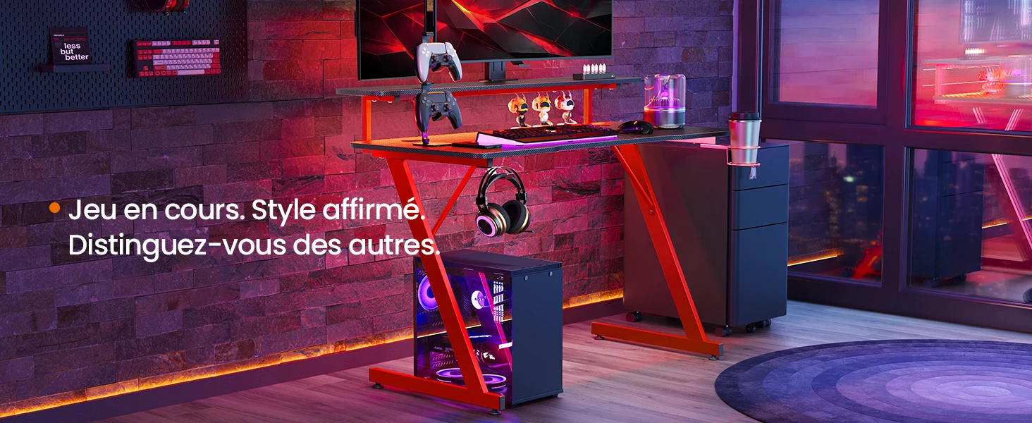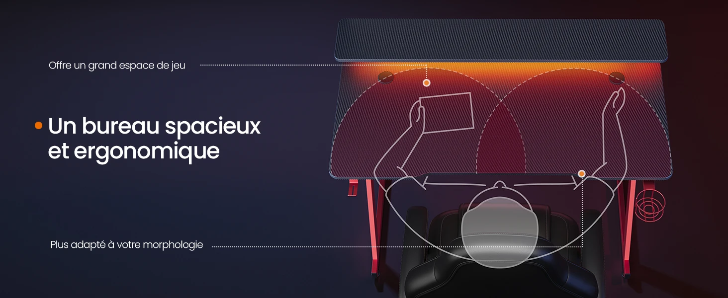 Capacité de charge élevée : Ce bureau gaming supporte jusqu’Ã 50 kg sur le dessus et 20 kg sur le support d’écran