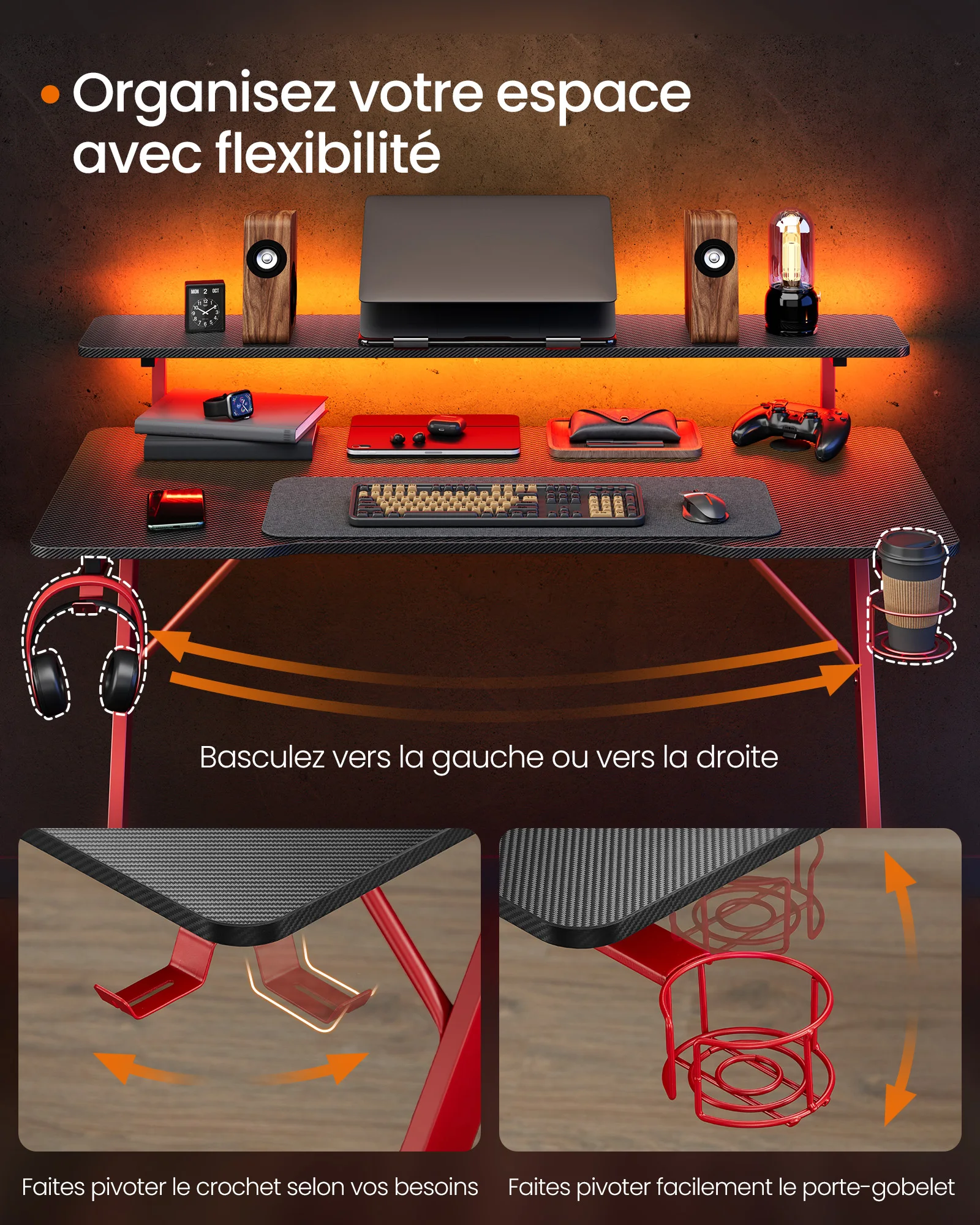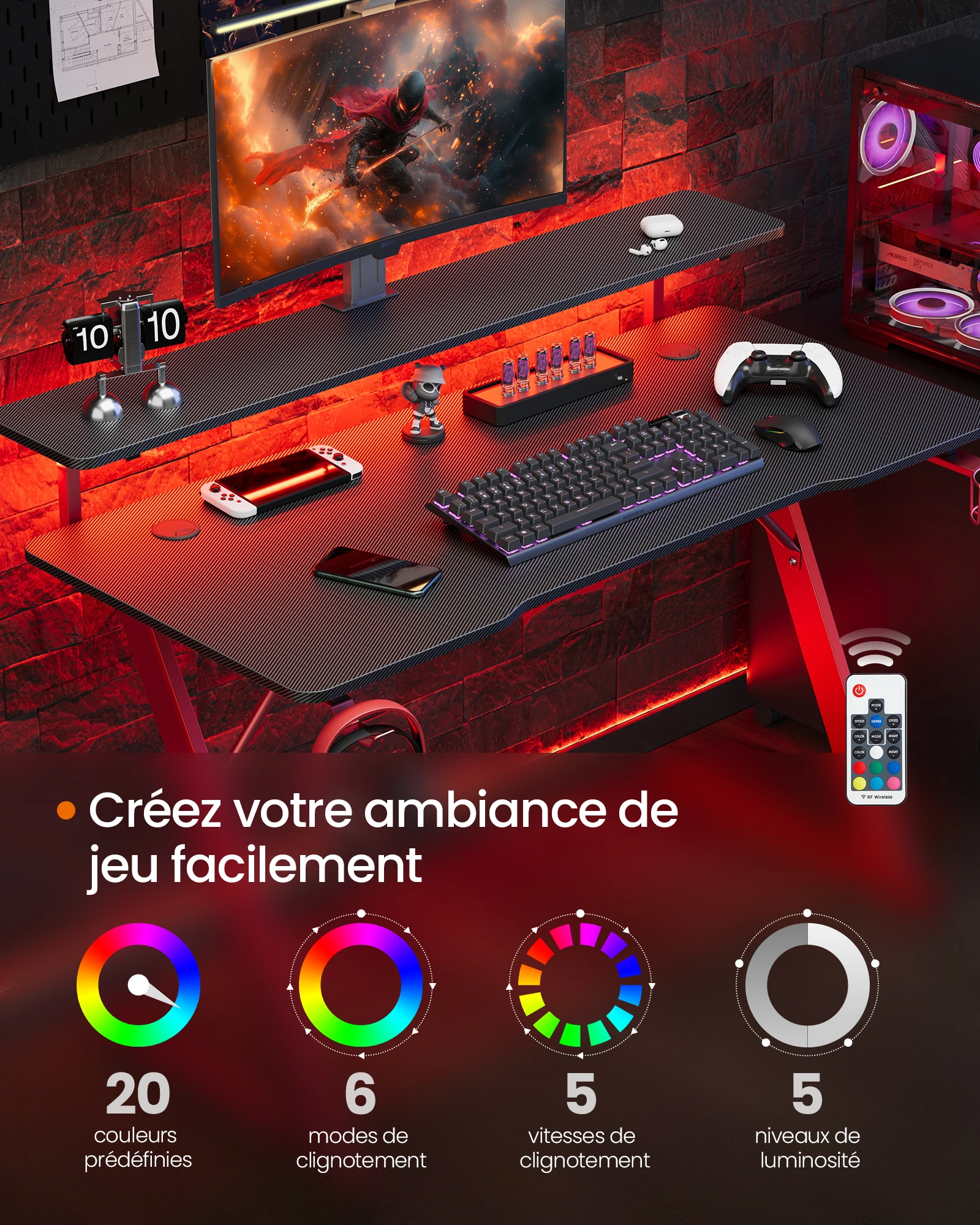 ã€Ãƒ‰CLAIRAGE LED INTÉGRÉ】Ce bureau informatique est doté d’un éclairage LED intégré avec 20 couleurs, 6 modes et 5 vitesses de clignotement et 5 niveaux de luminosité. Plongez dans une ambiance de jeu dynamique